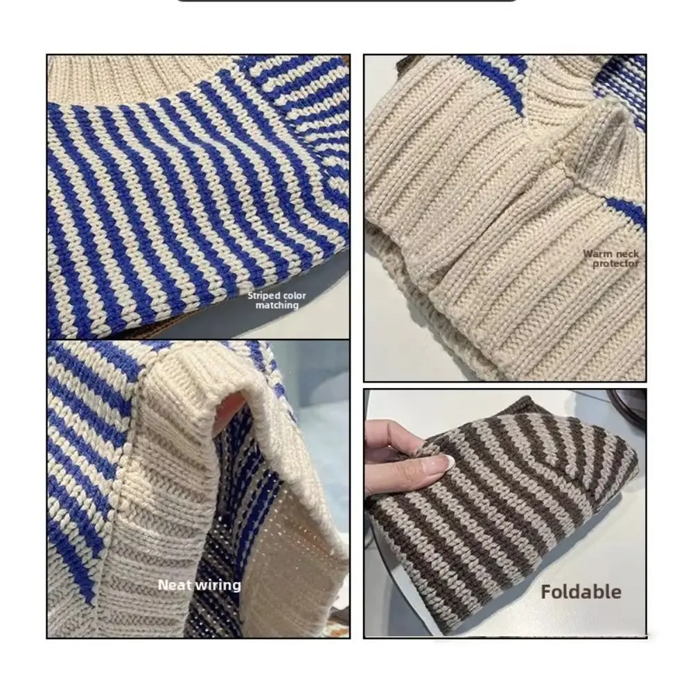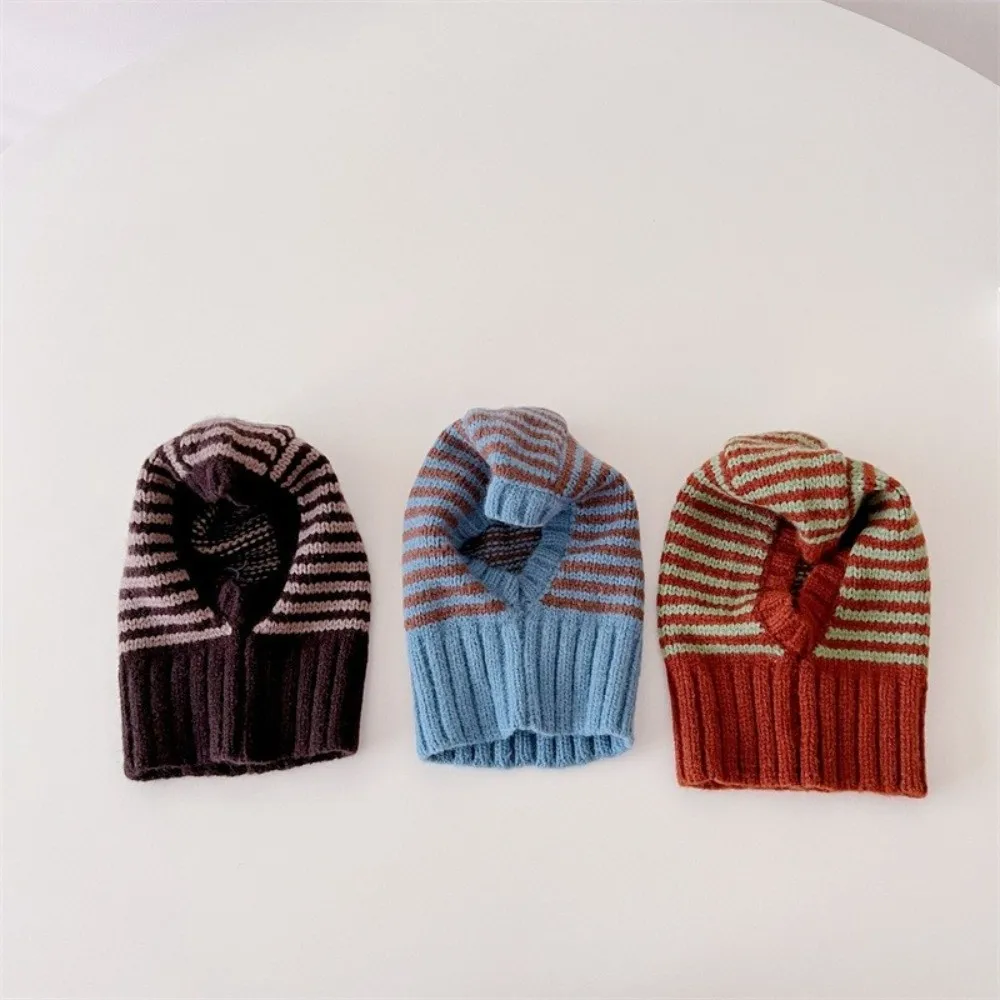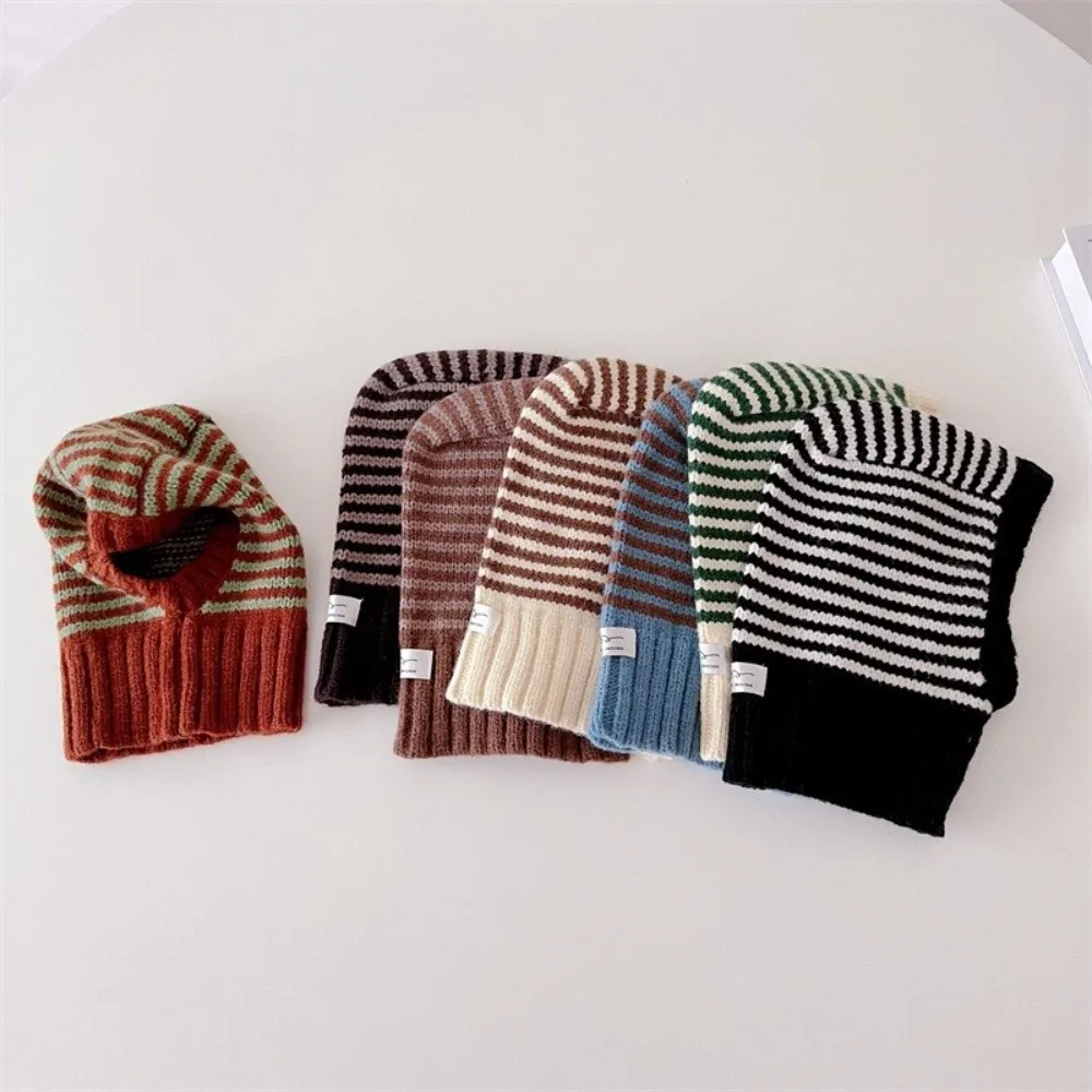 Comprar Bufanda de invierno con diseño a rayas para niños, Material de punto, estilo con capucha, gorros de protección para los oídos, protección para los oídos, forma de pasamontañas