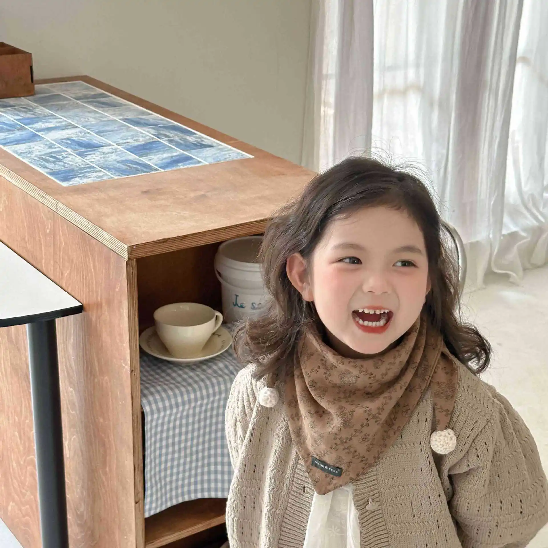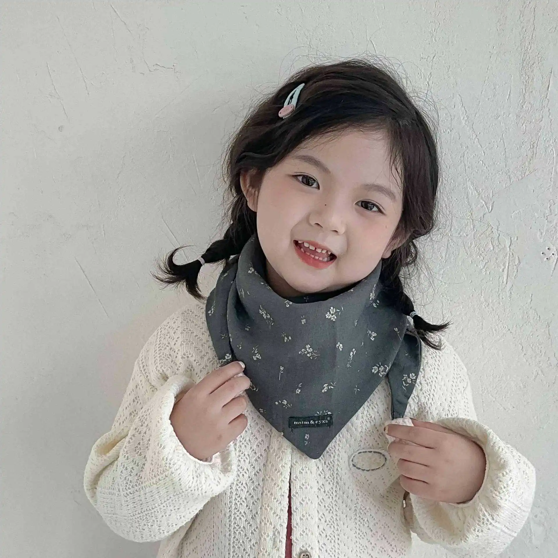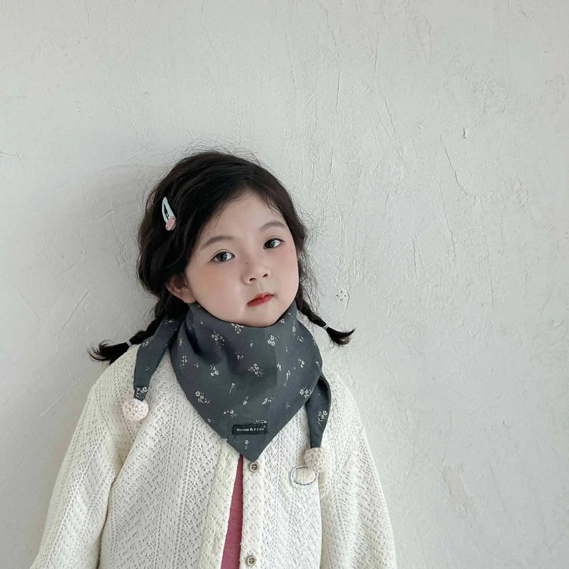 Comprar Bufanda para niños con estampado Floral, pañuelo ligero para bebé, calentador de cuello para niños y niñas, bufandas cuadradas finas y cálidas para otoño e invierno para niños pequeños