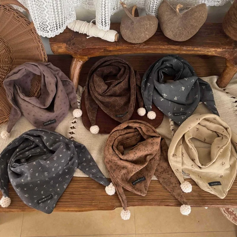 Comprar Bufanda para niños con estampado Floral, pañuelo ligero para bebé, calentador de cuello para niños y niñas, bufandas cuadradas finas y cálidas para otoño e invierno para niños pequeños