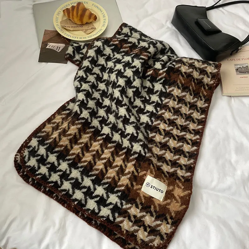 Comprar Bufanda de pata de gallo de la suerte para mujer, bufanda cálida de otoño e invierno para parejas, chal a cuadros rojo grueso de Cachemira de imitación de doble cara