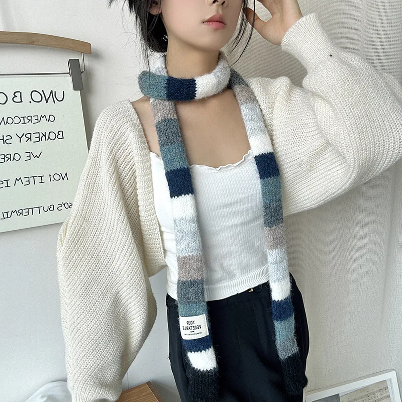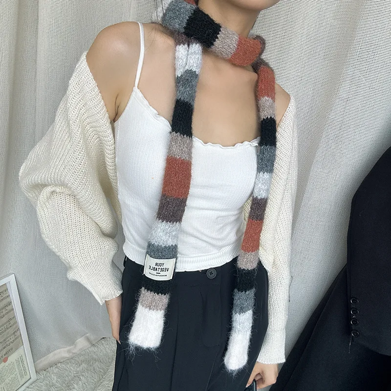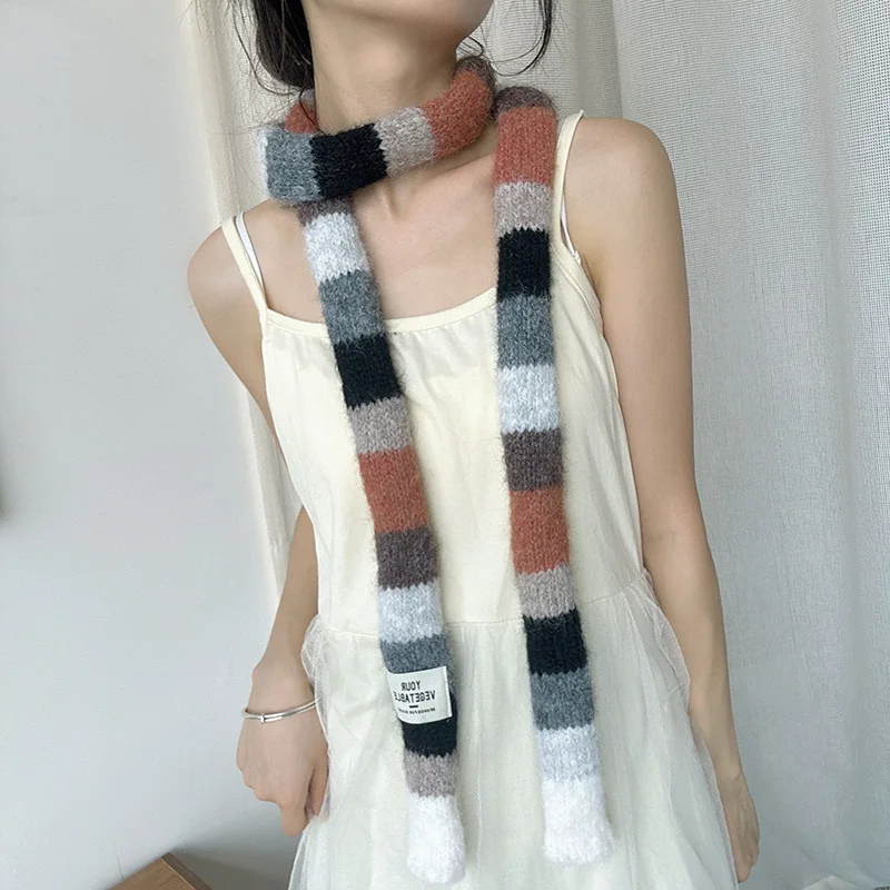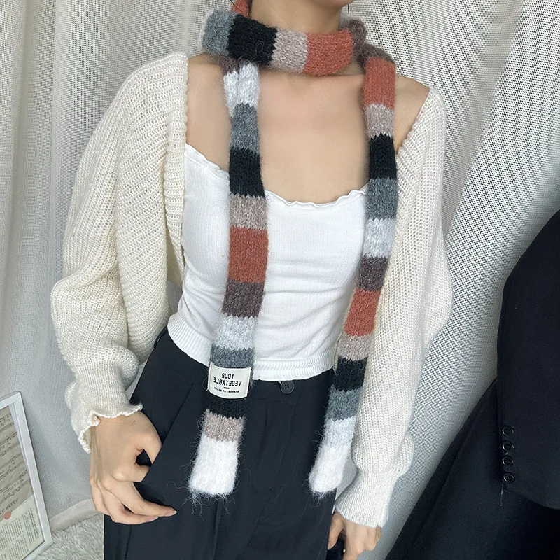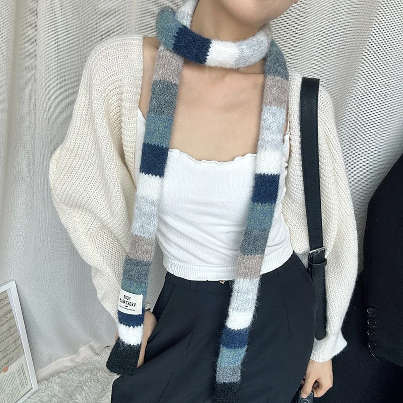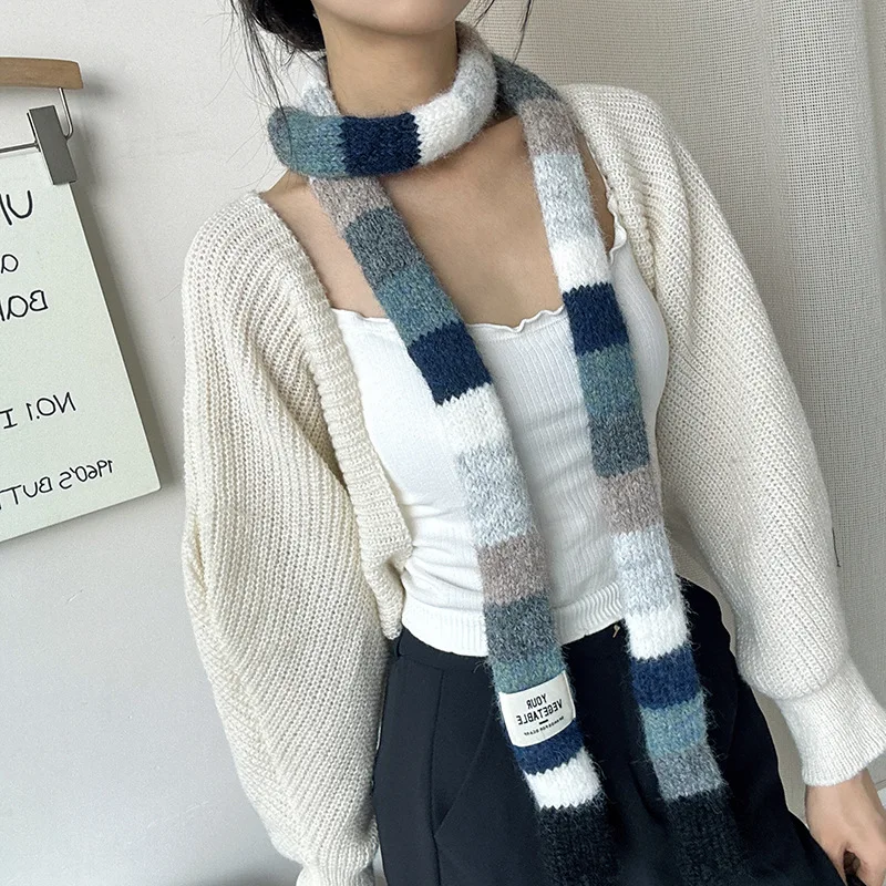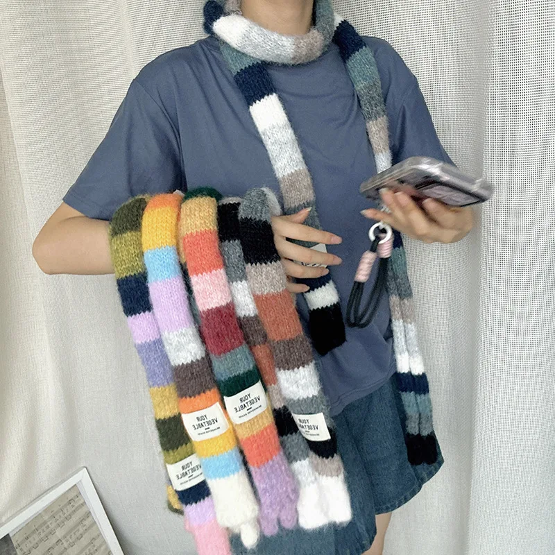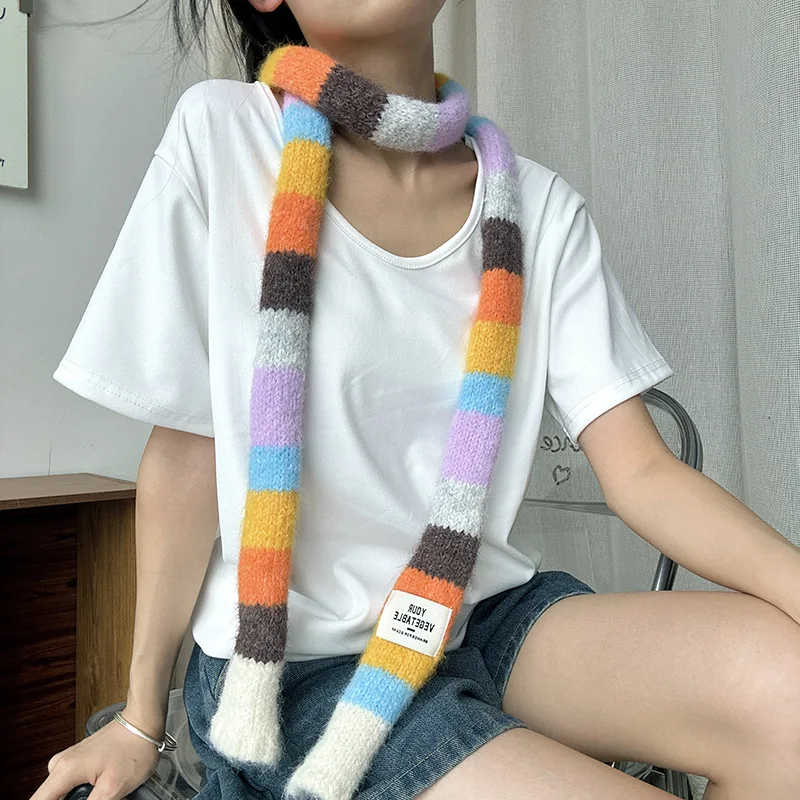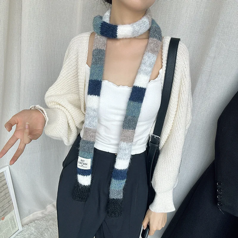 Comprar Bufanda pequeña de punto a rayas de arcoíris, diseño de nicho, bufanda larga y estrecha, nueva moda versátil para mujer