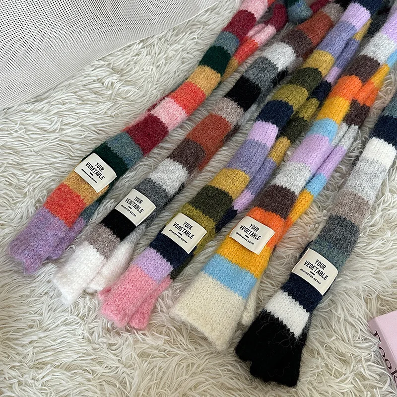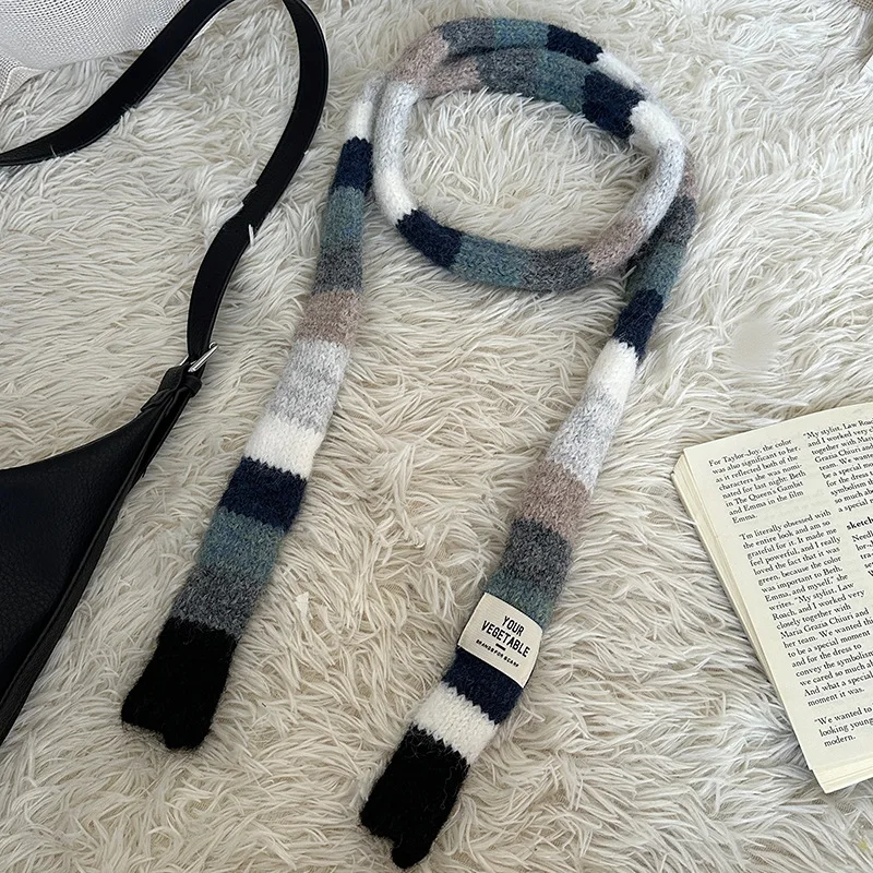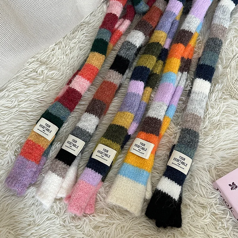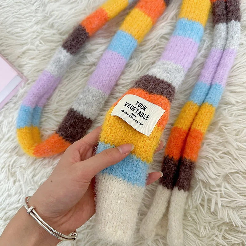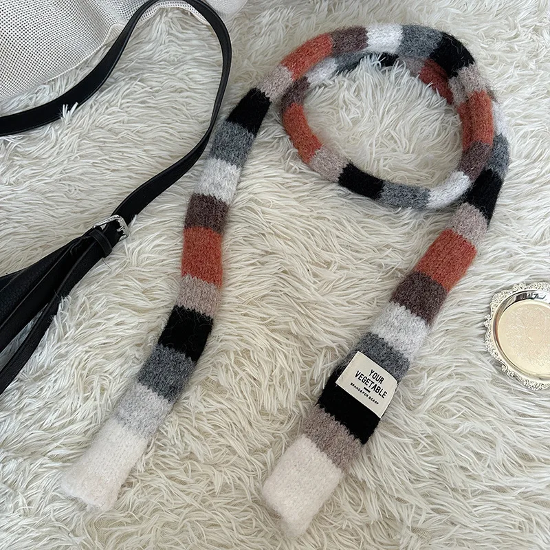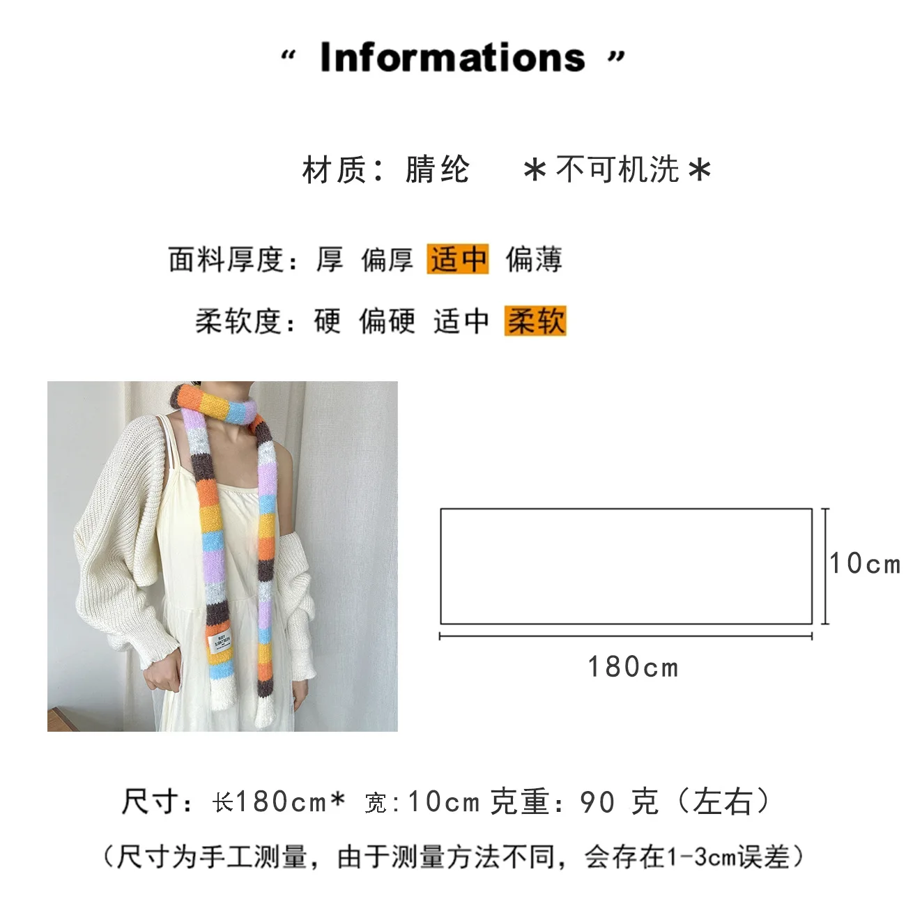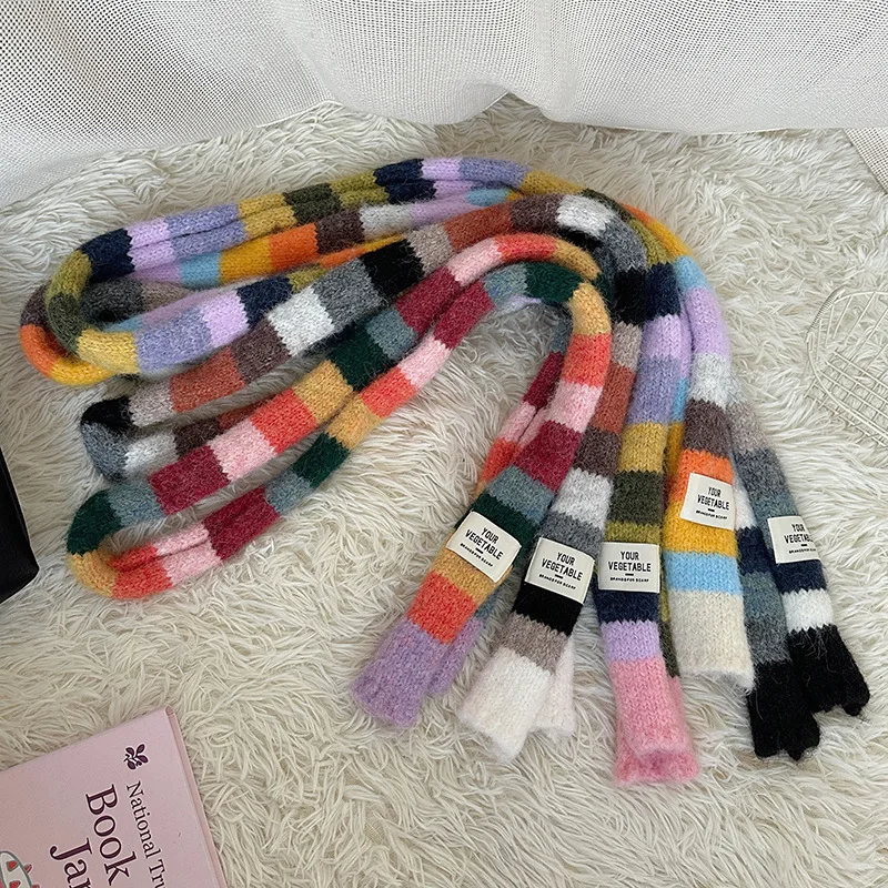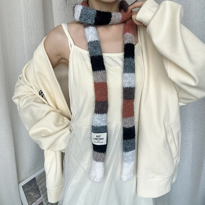 Comprar Bufanda pequeña de punto a rayas de arcoíris, diseño de nicho, bufanda larga y estrecha, nueva moda versátil para mujer