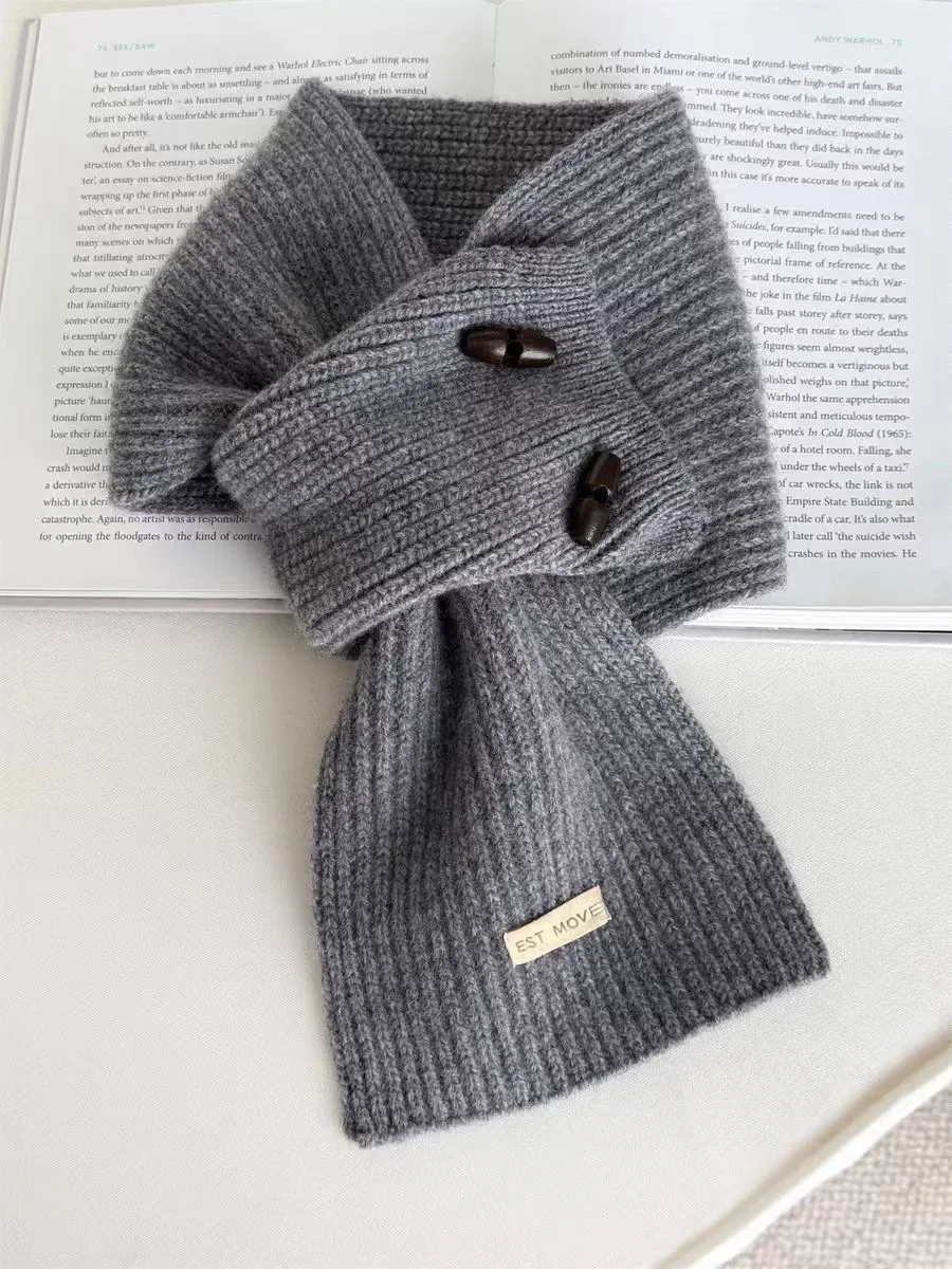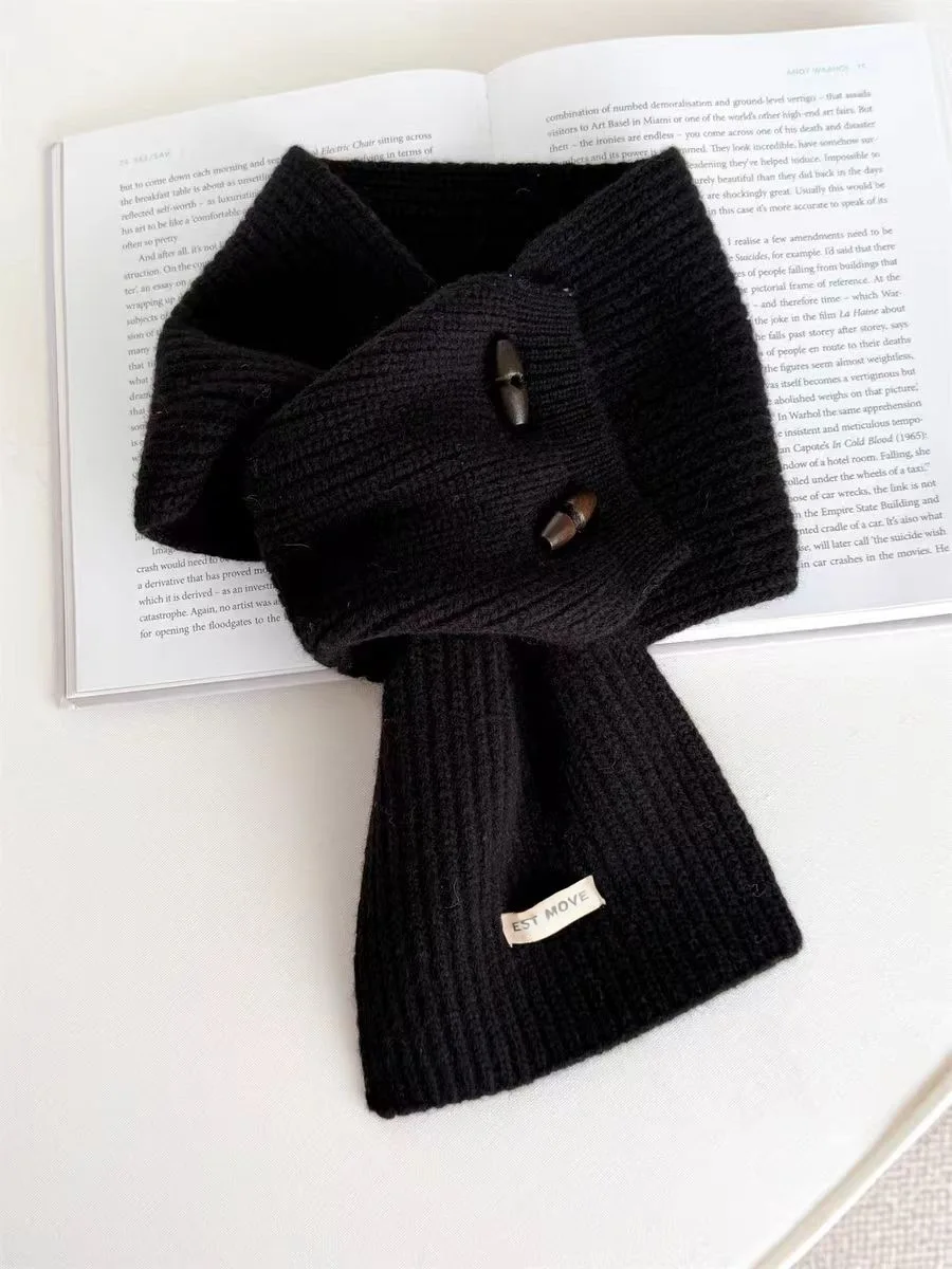 Bufanda de punto con botones de estilo coreano, calentador de cuello con nudo cruzado de invierno, cuello falso suave y agradable para la piel, corbatas versátiles para mujer
