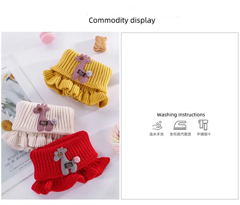Comprar Bufanda de punto con estampado de jirafa para bebé, bufandas cálidas de dibujos animados, cuello con volantes, círculo para exteriores, invierno, 6 colores, novedad