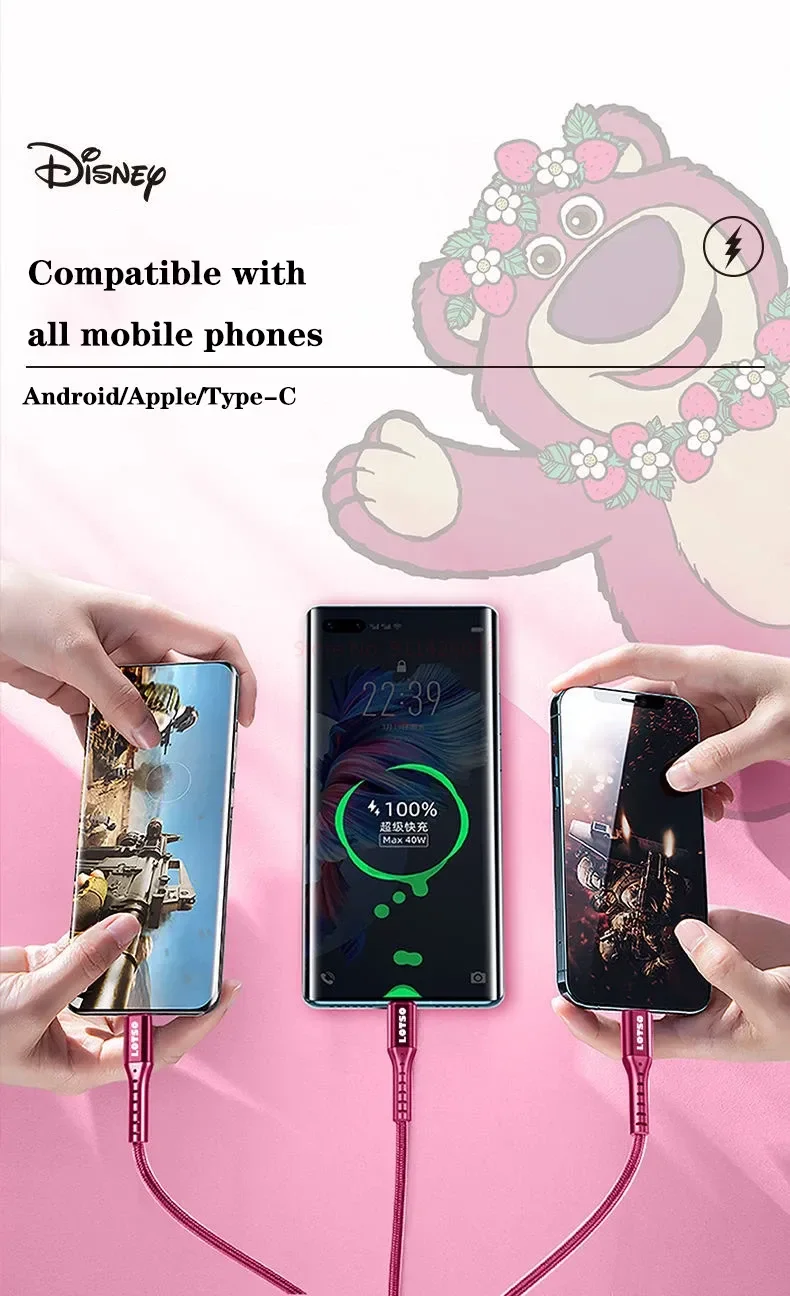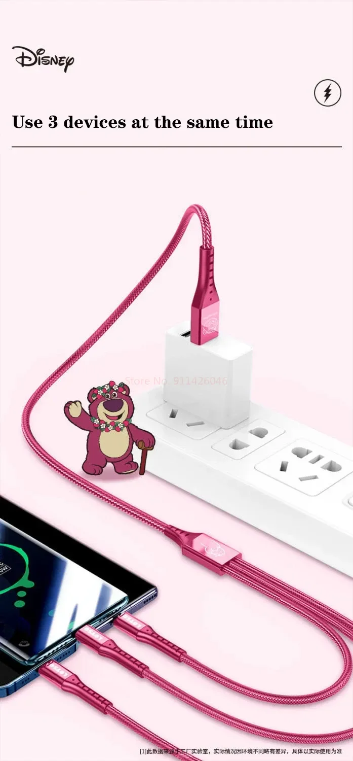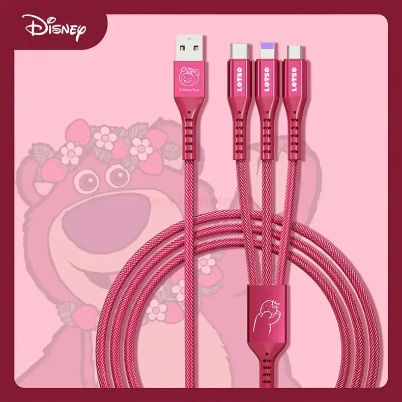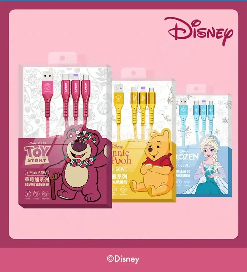 Cable de carga Disney 3 en 1, Cable de carga rápida de datos, fresa, Winnie The Pooh congelado para cargador Lightning Usb Micro tipo-c