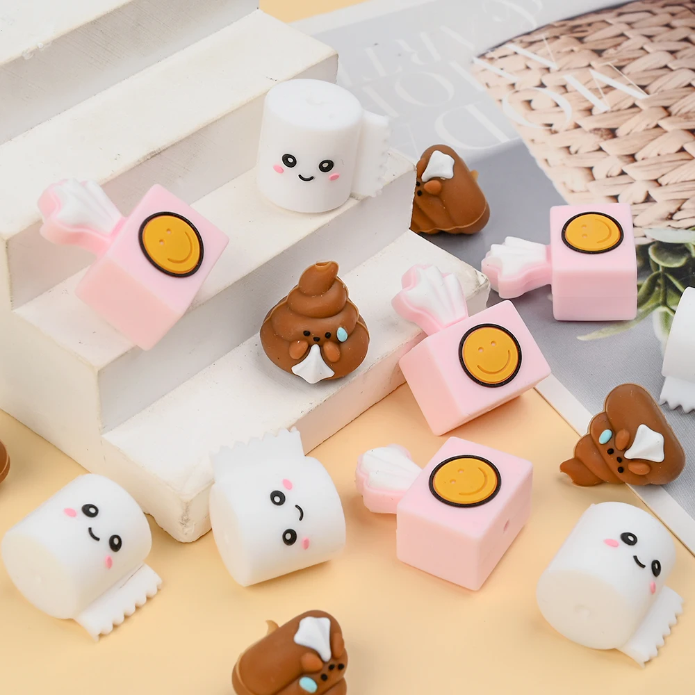 Cadena de chupete de 6 uds., cuentas de silicona, juguete para la dentición sin BPA, cuentas de dentición masticables, chupete, mordedor, accesorios para collar DIY