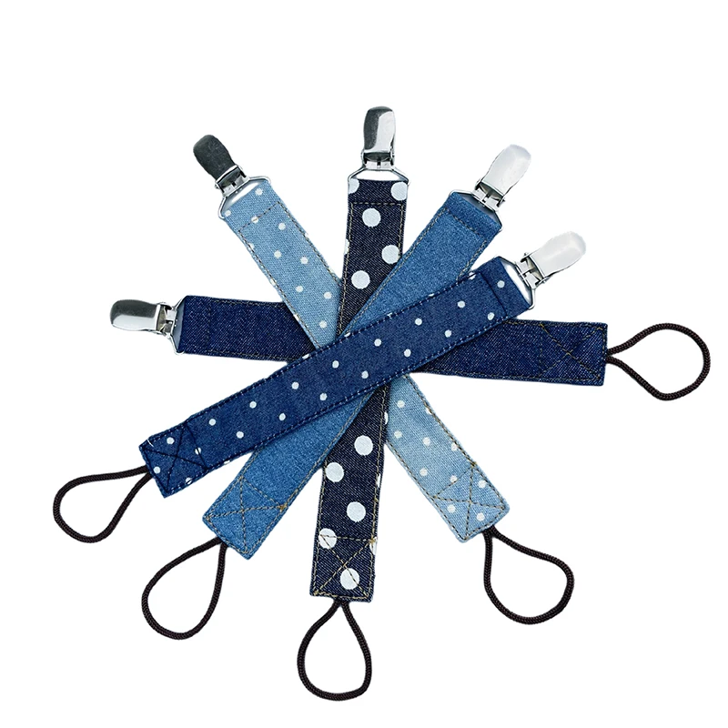 Cadena para chupete de bebé, soporte para chupete de tela vaquera, Clips para chupete de Jean para juguetes para niños pequeños, mordedores