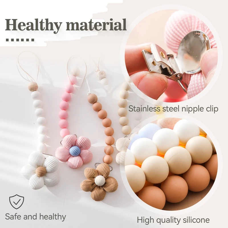 Comprar Cadena de chupete de flores para bebé, Clip de pezón simulado de cuentas de silicona, Clips de dentición sin BPA, soporte colgante para chupete, juguetes para recién nacidos