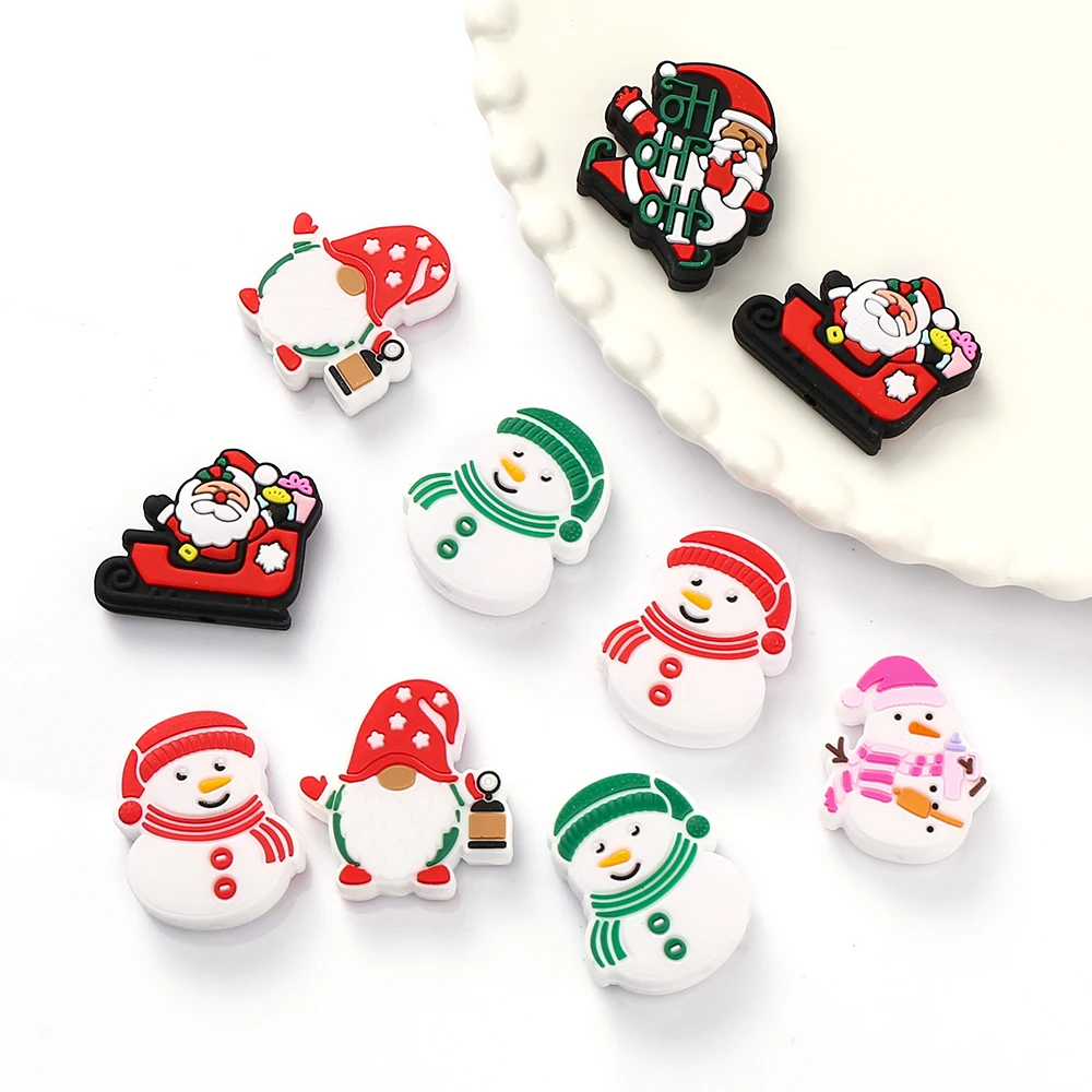 Comprar Cadena de chupete de Papá Noel para bebé, mordedor de silicona de grado alimenticio, regalos de lactancia masticables, 10 piezas