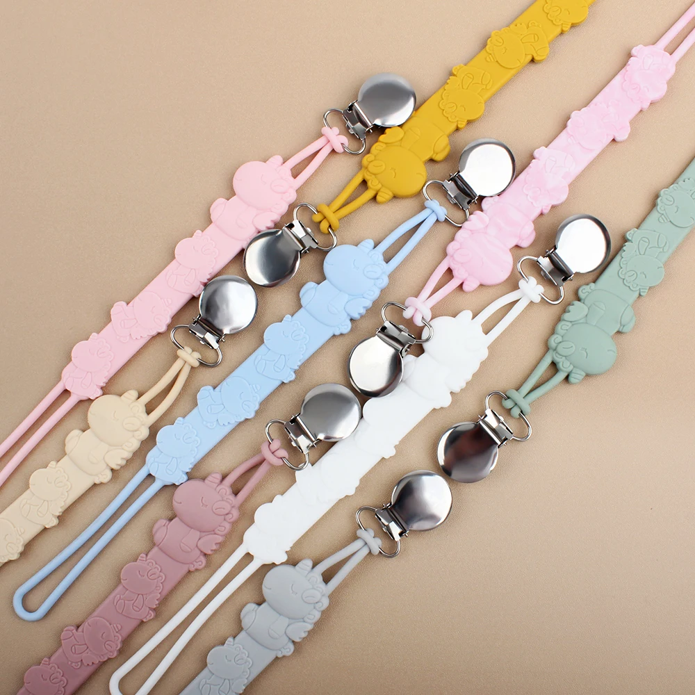 Comprar Cadena de chupete de silicona para bebé, mordedor con forma de dibujos animados, collar hecho a mano, juguete de dentición sin BPA