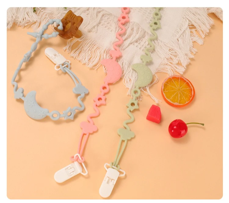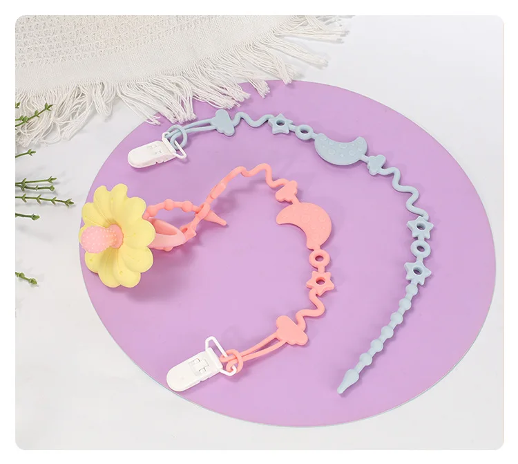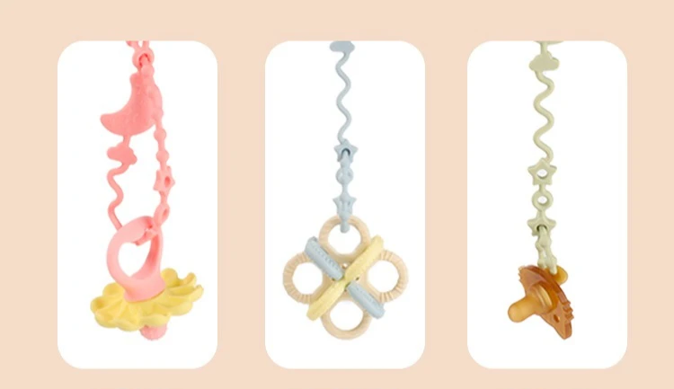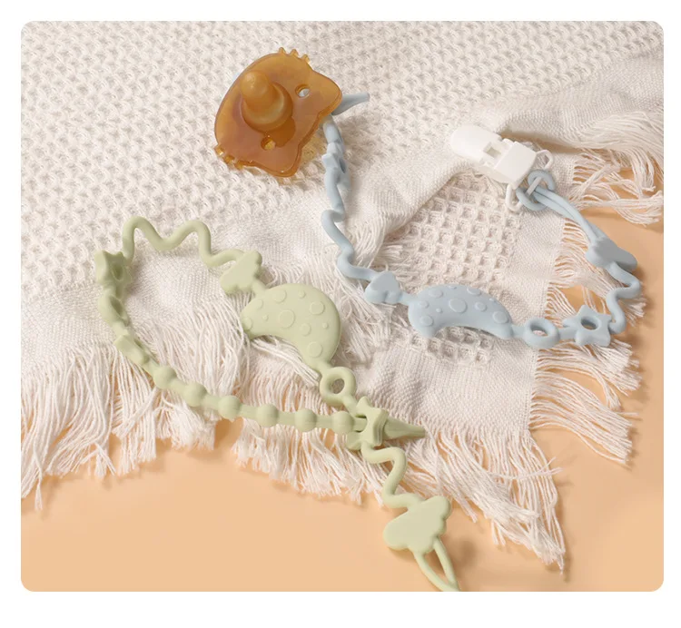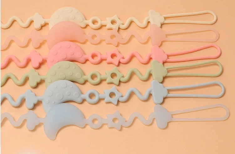 Cadena de chupete de silicona suave ajustable para bebé, juguetes mordedores, correa para chupete antipérdida, silla alta adecuada, cuna, regalos para recién nacidos