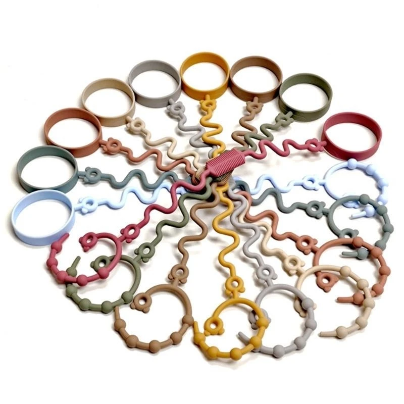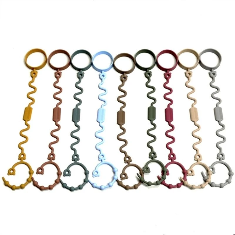 Multifunción: la cadena para chupete es adecuada para casi todos los juguetes mordedores, vasos de agua, comederos, biberones y chupetes, mantiene al bebé al alcance del juguete mordedor y otros, evitando que se caiga o se pierda en el piso sucio.