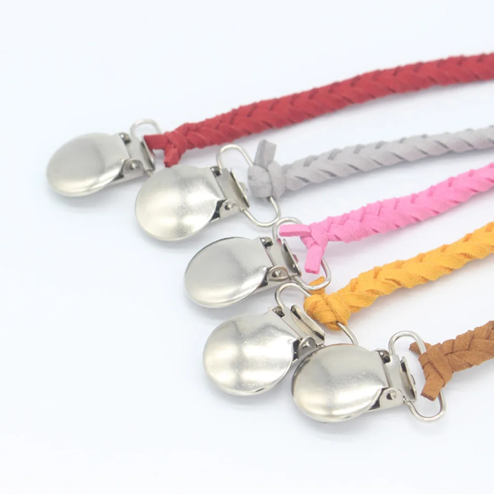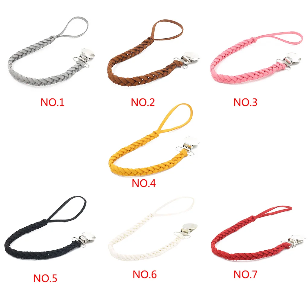 La cadena del chupete se puede recortar en la esquina de la ropa del bebé para evitar que el chupete se caiga al suelo.El diseño único hace que el clip del chupete sea fácil de atraer la atención del bebé.Hecho principalmente de cuero y aleación, no dañará fácilmente a su bebé.De diseño ligero, esta cadena de chupete de alimentación es portátil, fácil y cómoda de llevar.Diseñado con hermosos colores, esta cadena de chupete tejida de cuero puede combinar bien con la ropa del bebé y otros accesorios.Características: