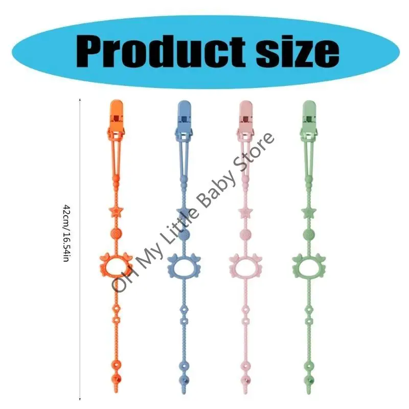 Multifunción: adecuado para casi todos los juguetes mordedores, vasos de agua, comederos, biberones y chupetes, mantiene al bebé al alcance del juguete mordedor y otros, evitando que se caiga o se pierda en el piso sucio.