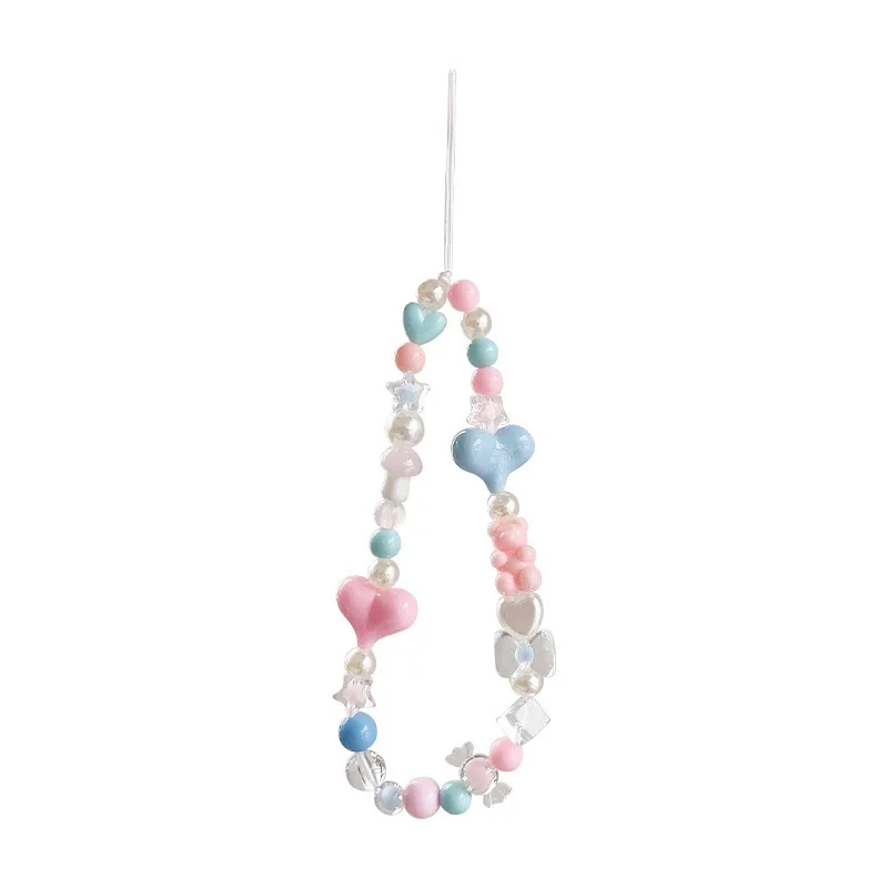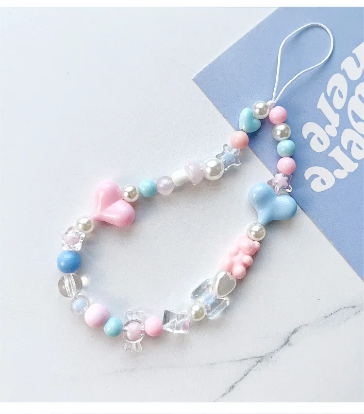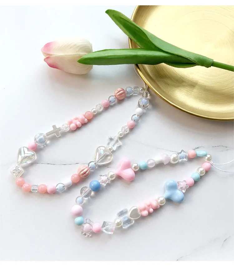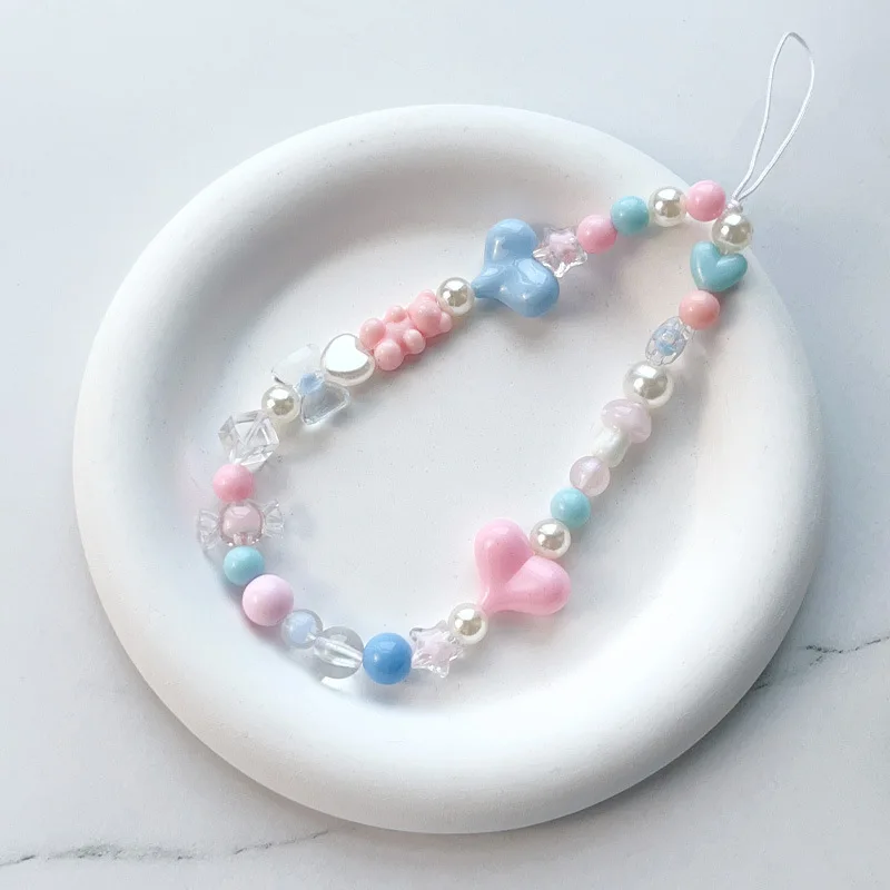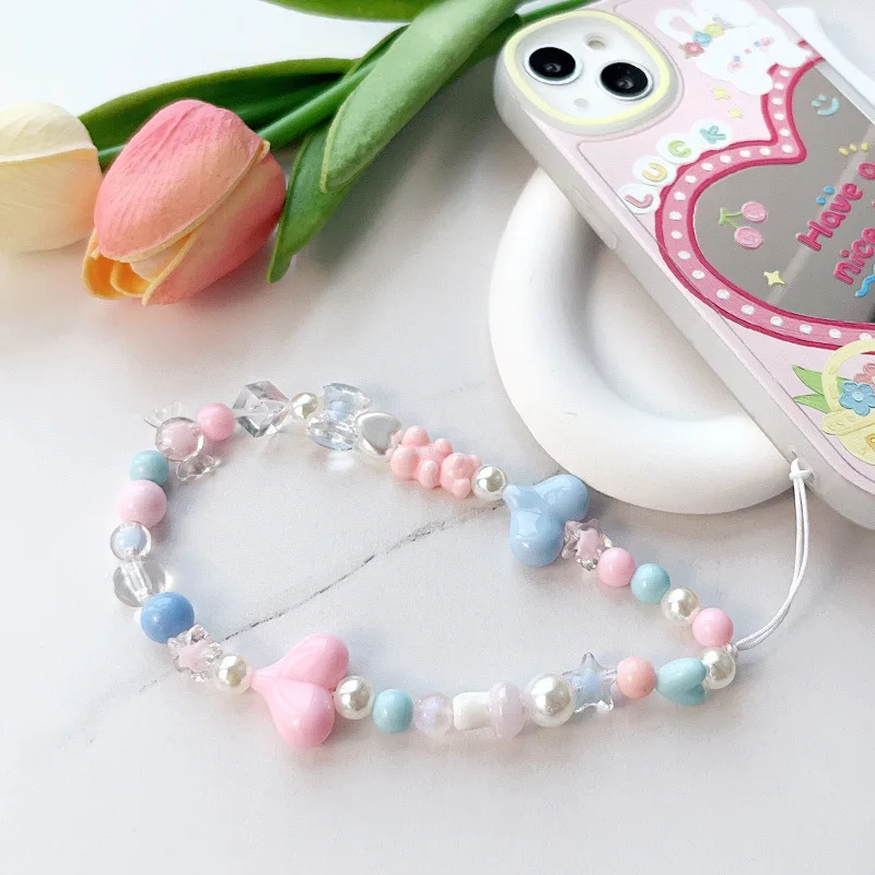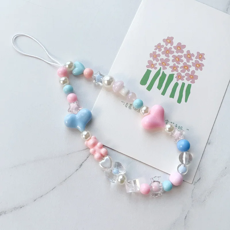Comprar Cadena de teléfono con cuentas de oso, lindo llavero con dijes, correa de pulsera, cordón de flores para teléfono móvil para niña y mujer