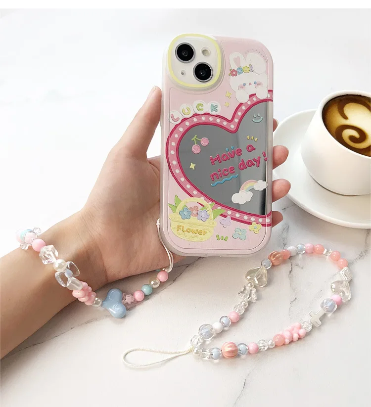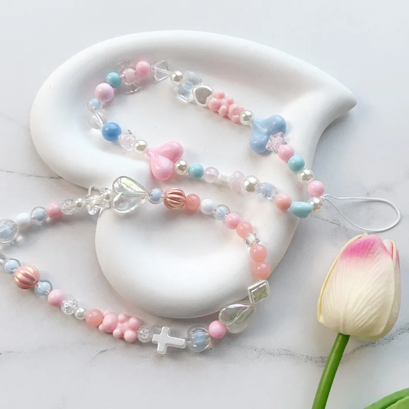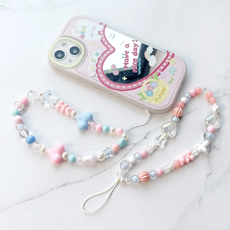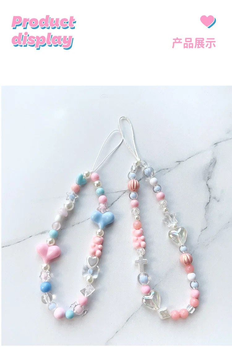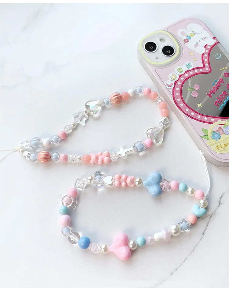 Comprar Cadena de teléfono con cuentas de oso, lindo llavero con dijes, correa de pulsera, cordón de flores para teléfono móvil para niña y mujer