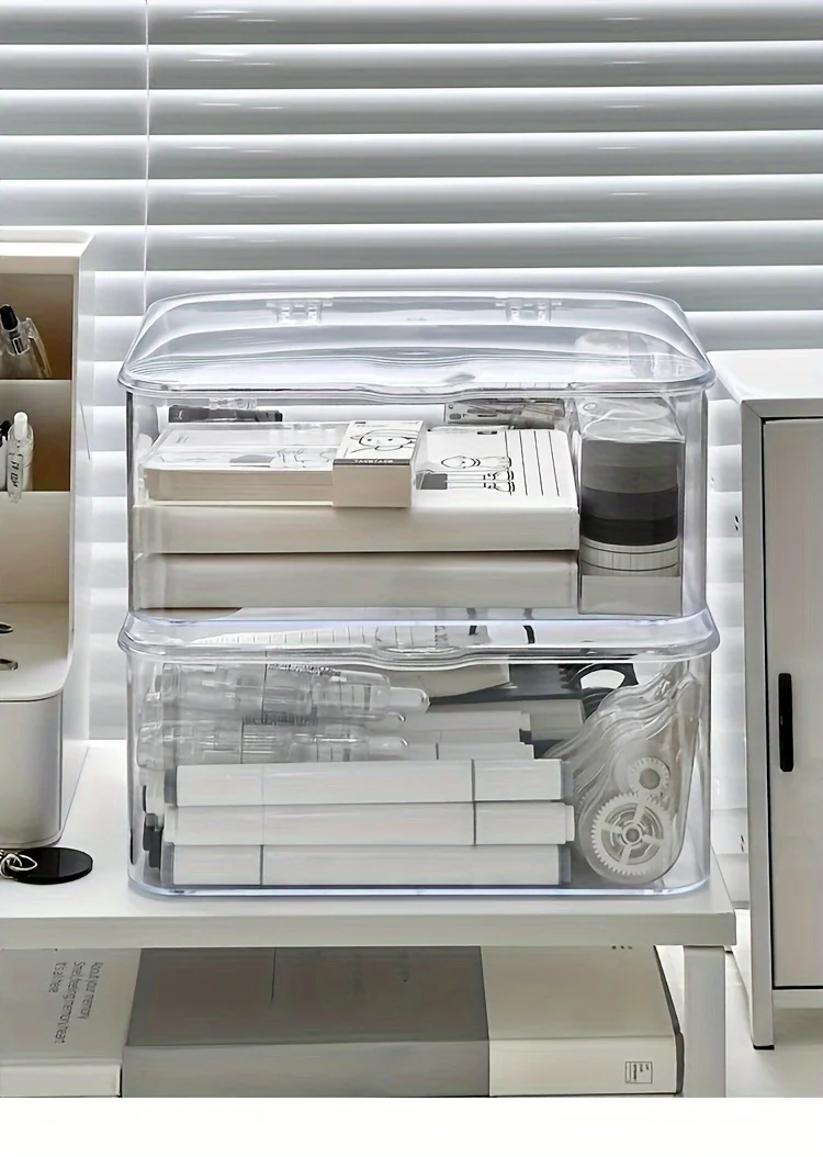 Caja de almacenamiento de acrílico transparente con diseño de concha: organizador multiusos para el hogar, la oficina, el baño y los elementos esenciales