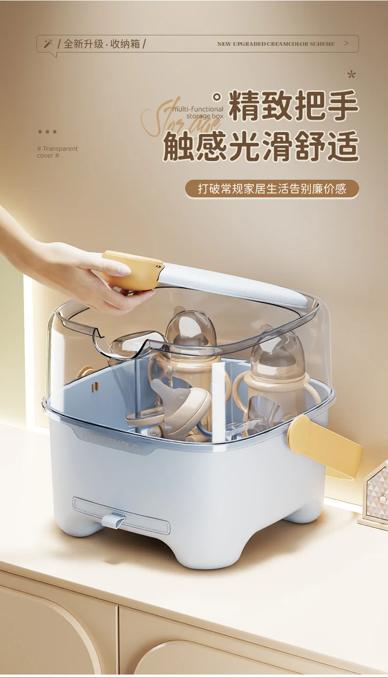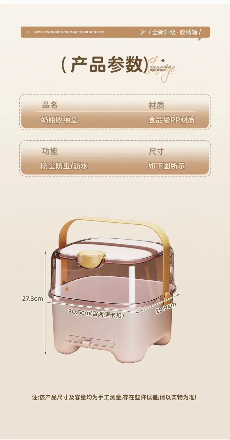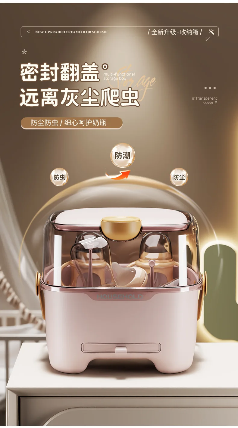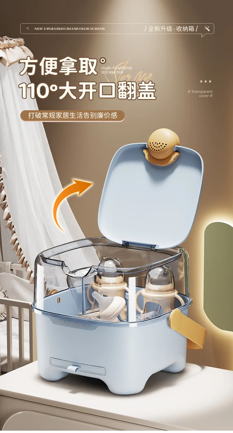 Caja de almacenamiento de biberones con tapa, organizador de vajilla a prueba de polvo y humedad para bebés, transparente de gran capacidad