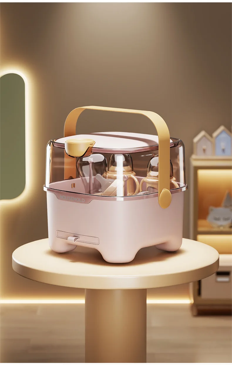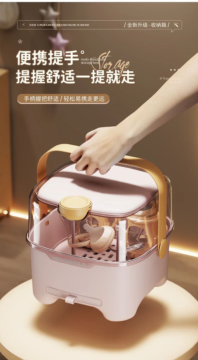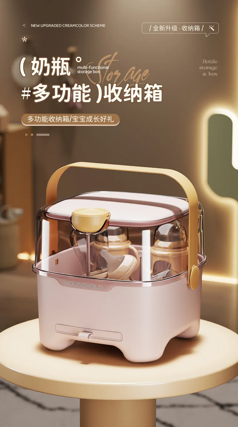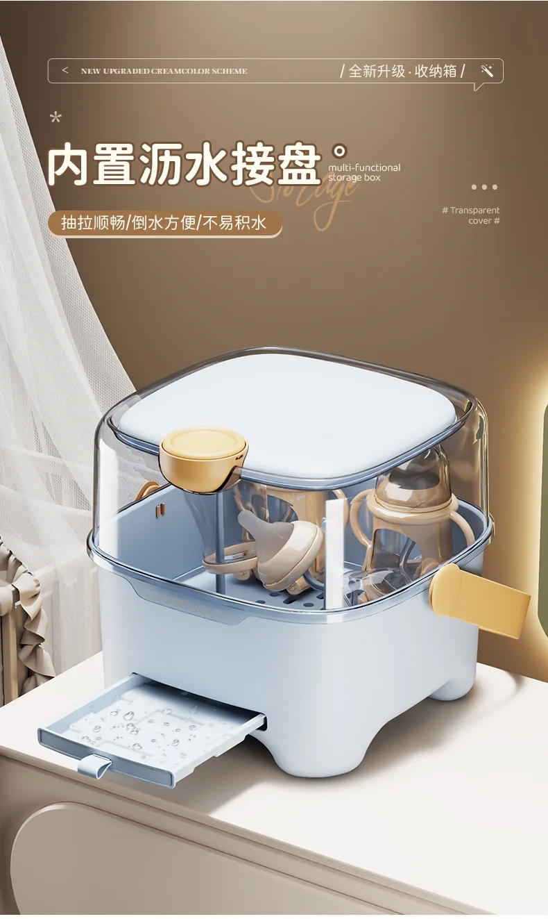 Caja de almacenamiento de biberones con tapa, organizador de vajilla a prueba de polvo y humedad para bebés, transparente de gran capacidad