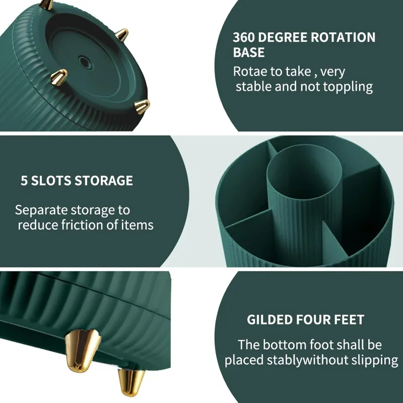 Caja de almacenamiento de cosméticos giratoria de 360 grados, caja de almacenamiento de cosméticos con 5 compartimentos, caja de almacenamiento multifuncional para cepillos