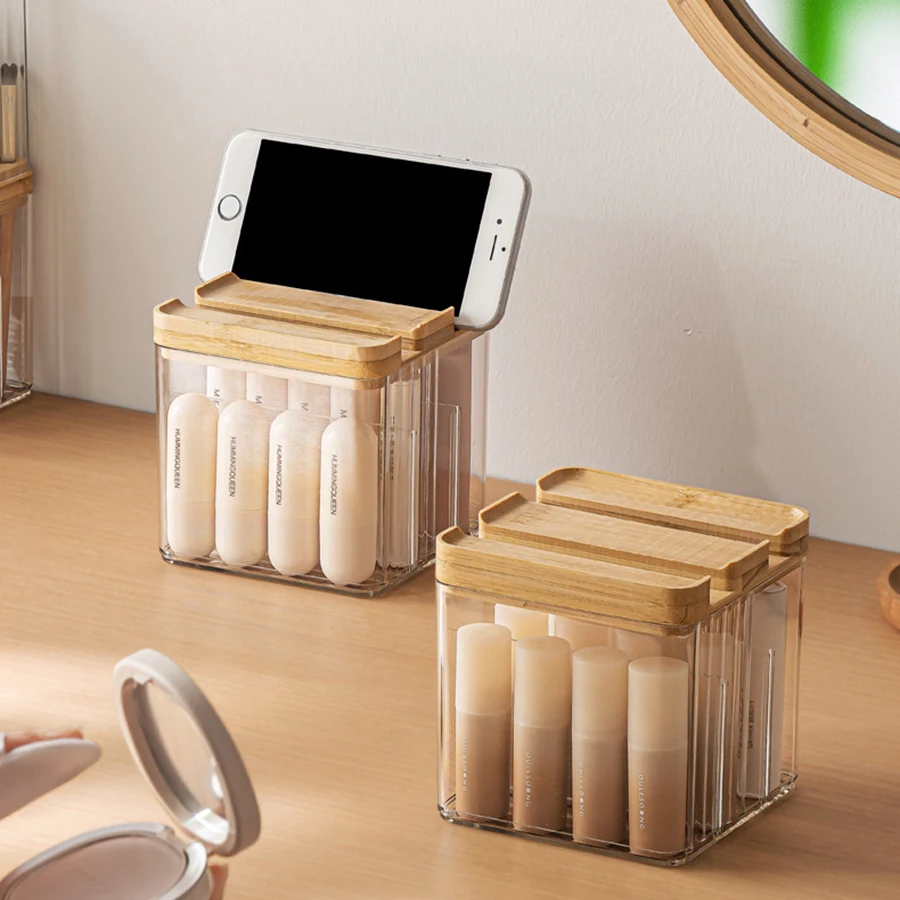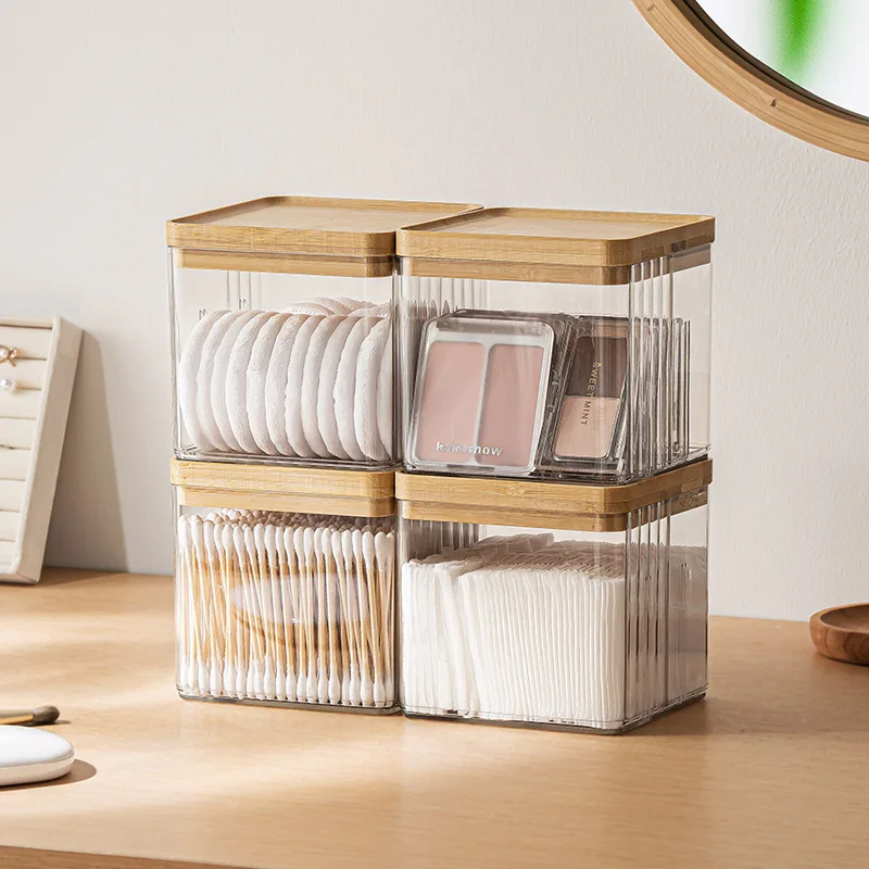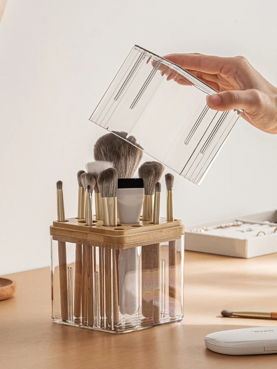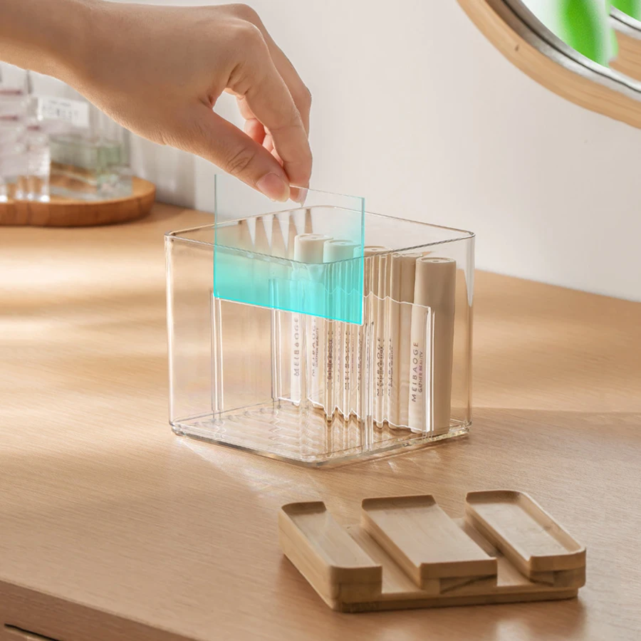 Comprar Caja de almacenamiento de cosméticos a prueba de polvo con cubierta para brochas de maquillaje de escritorio, hisopos de algodón, muestras de lápiz labial, organizador de productos para el cuidado de la piel
