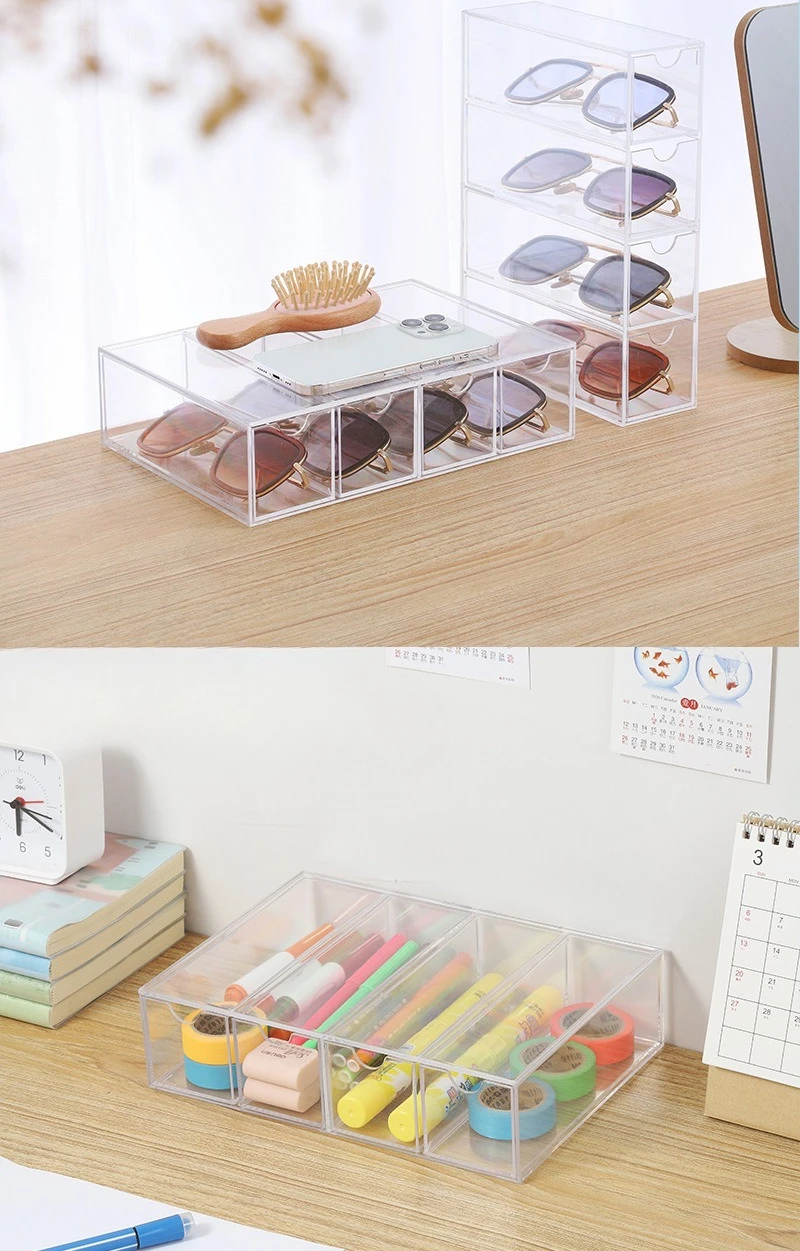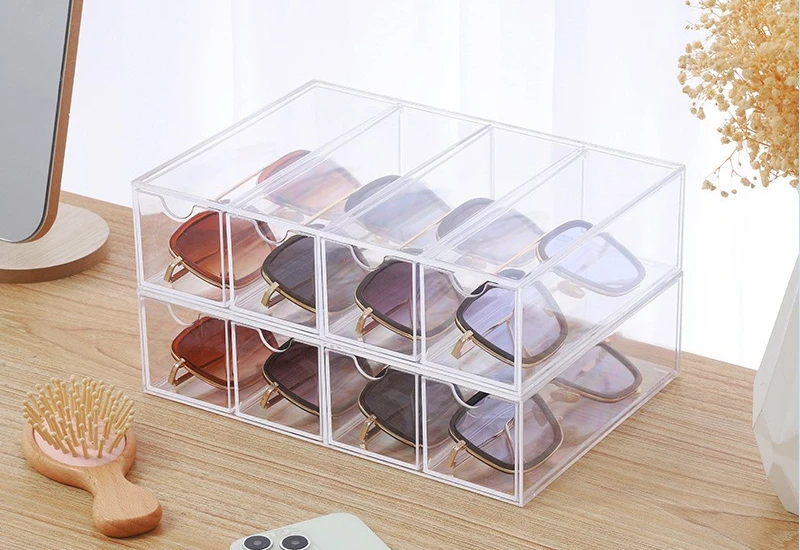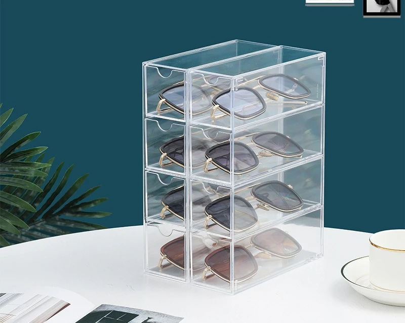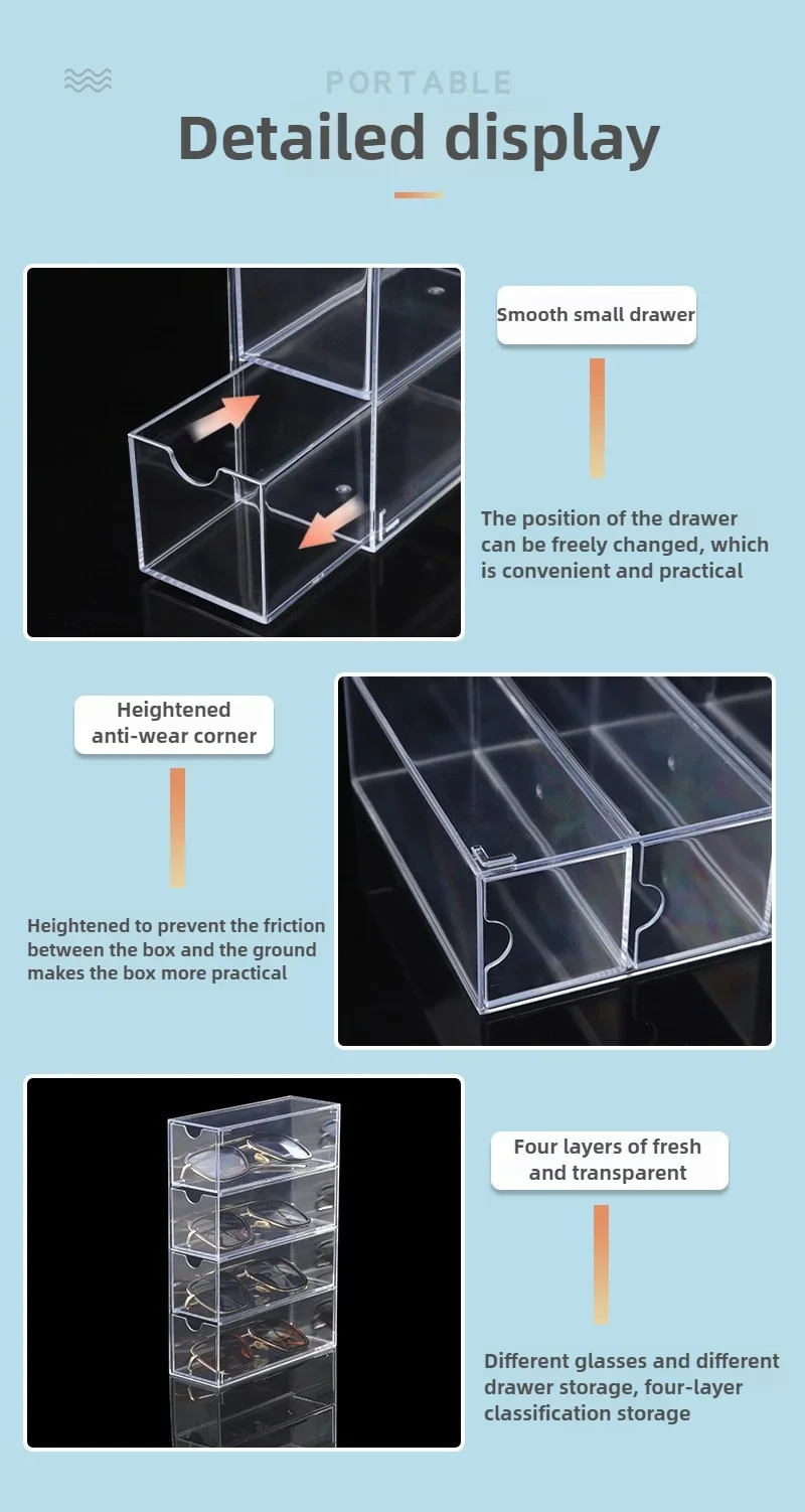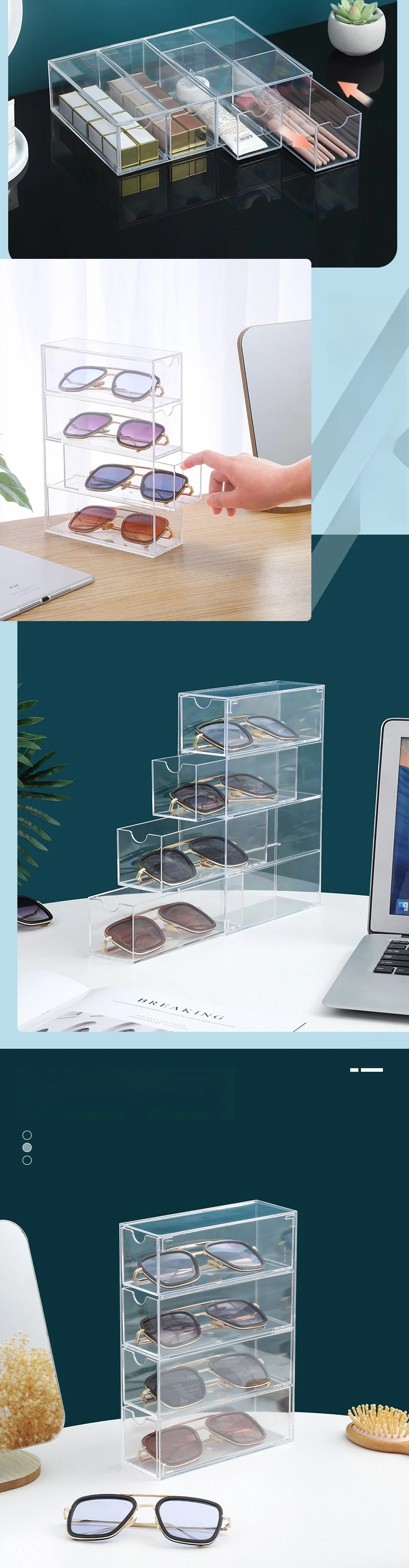 Caja de almacenamiento de gafas multicapa estilo cajón vitrina de exhibición de gafas de sol acrílico transparente a prueba de polvo estante de almacenamiento diverso