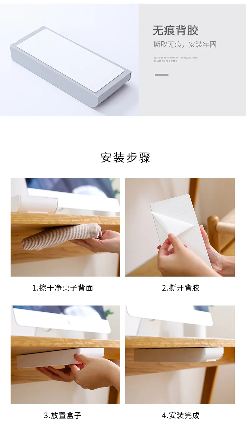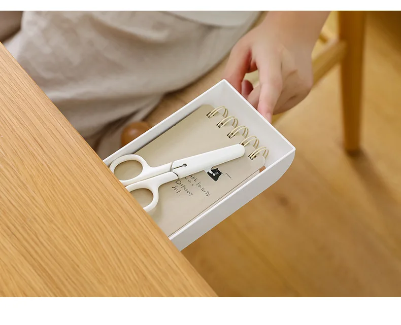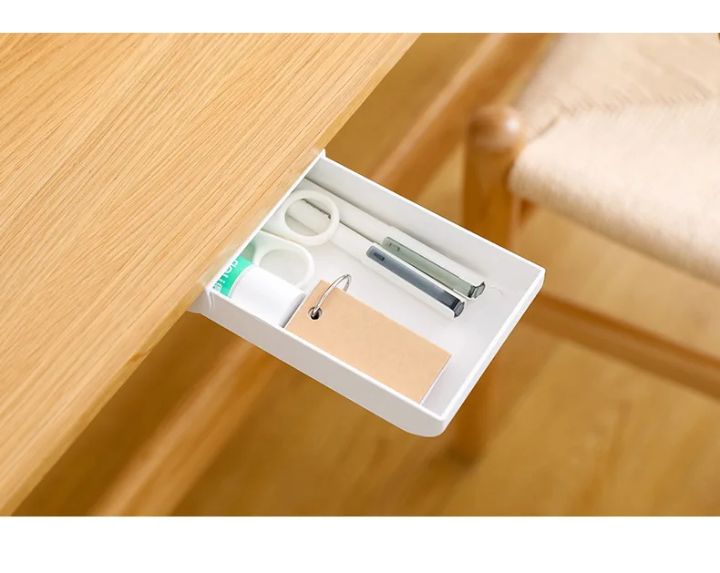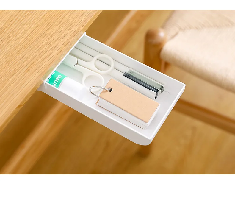 Caja de almacenamiento oculta para escritorio, cajón de plástico autoadhesivo, soporte de almacenamiento de mesa, organizador Simple de artículos diversos, cosméticos y papelería