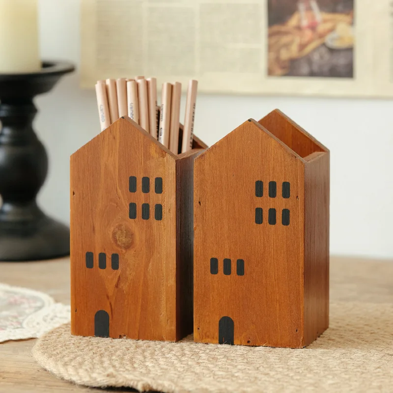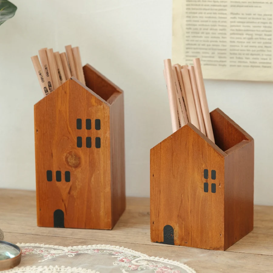 Caja de almacenamiento con portalápices para organización infantil, caja de almacenamiento ligera de lujo y de alta gama para escritorio de oficina, estilo Pastoral Simple