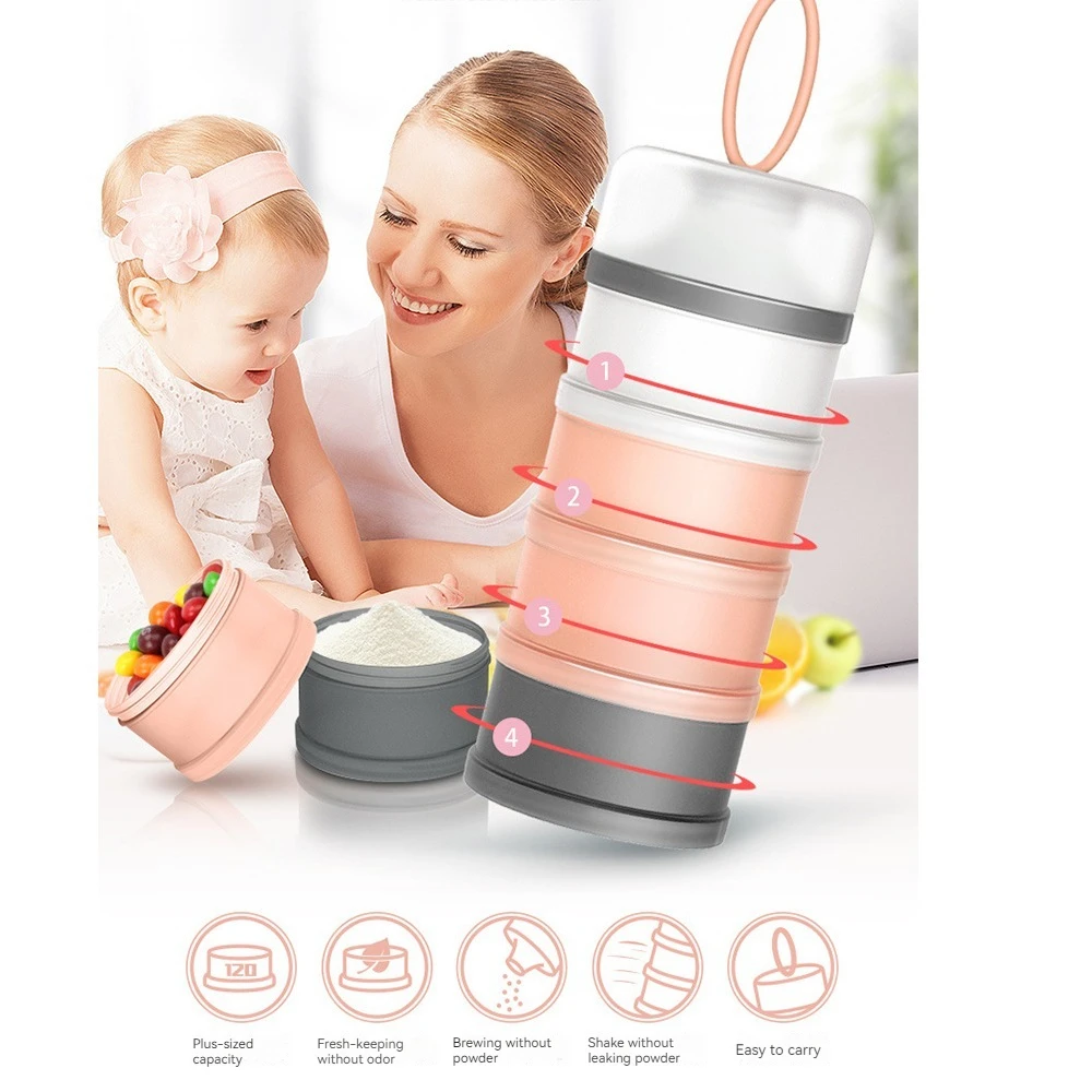 Comprar Caja de almacenamiento portátil de 4 capas para alimentos de bebé, contenedor para aperitivos, cereales esenciales, fórmula infantil