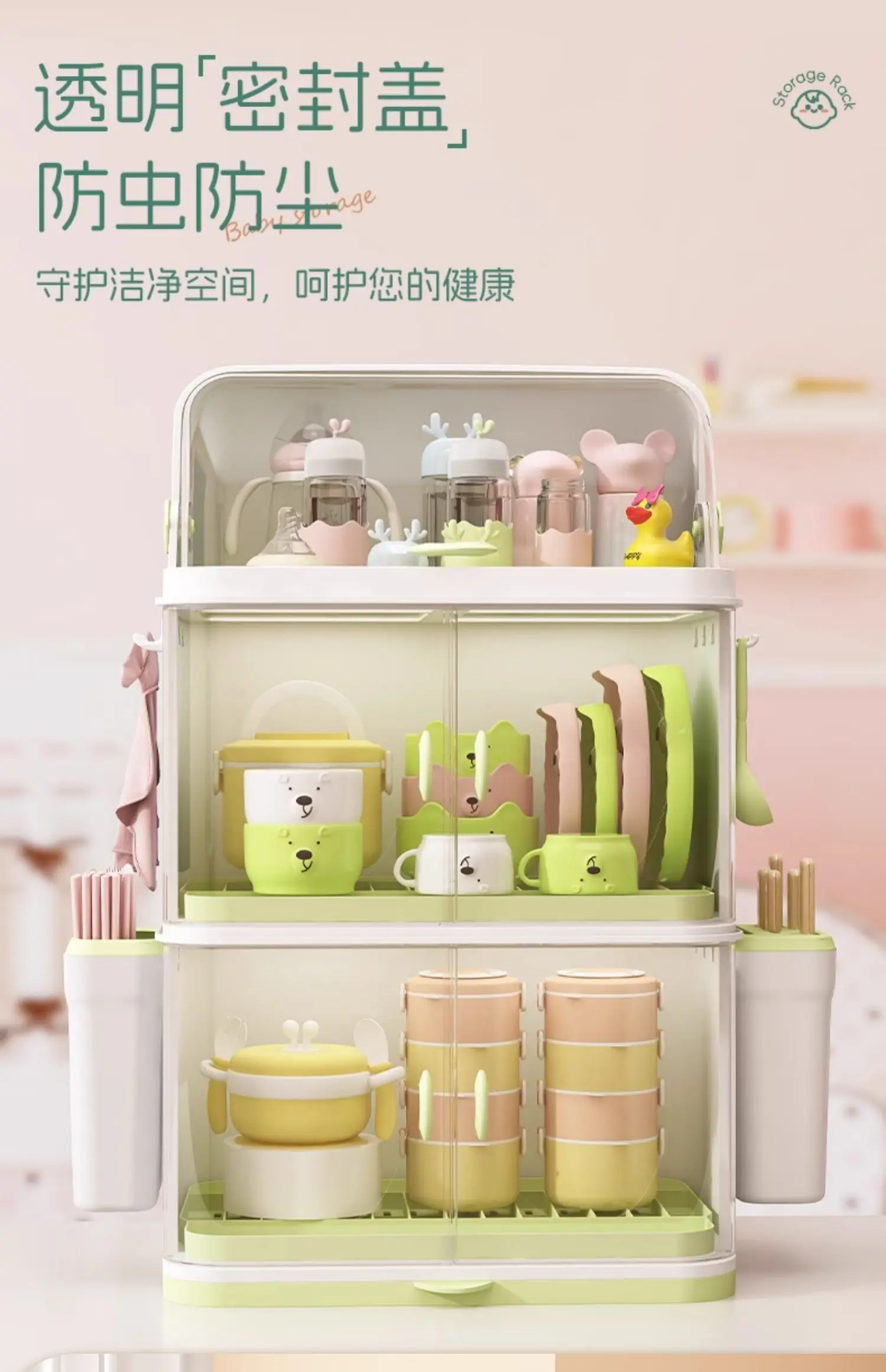 Caja de almacenamiento de vajilla para bebé, organizador de biberones, escurridor de utensilios, almacenamiento de alimentación infantil, solución higiénica, 106