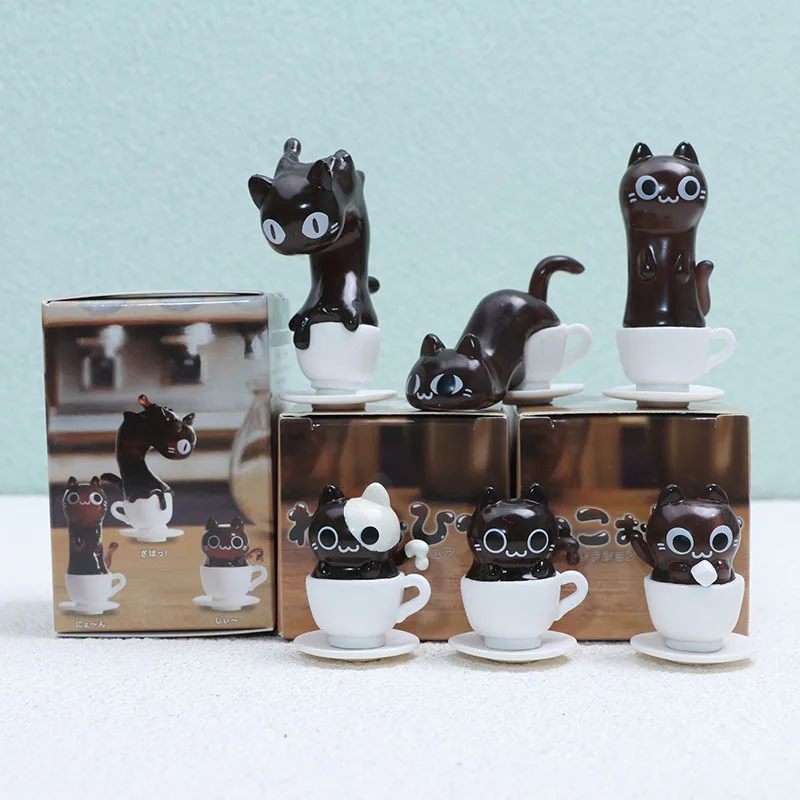 Caja ciega de gato cafetería, figuras de acción de gatos negros, colección de modelos, juguete, decoración de escritorio, regalos sorpresa
