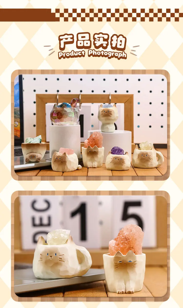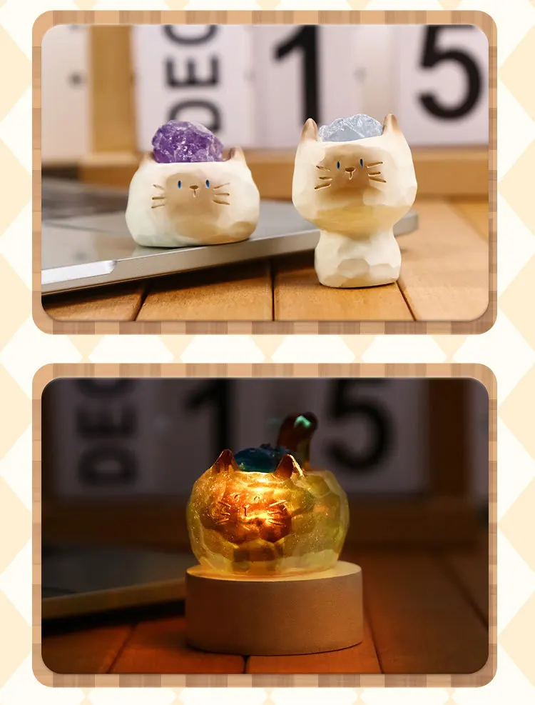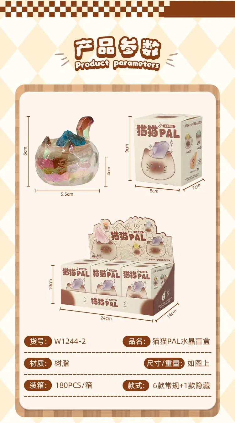 Caja ciega de gato PAL, muñeca de gato bonita, adorno de escritorio de piedra de cristal, regalo de cumpleaños sorpresa