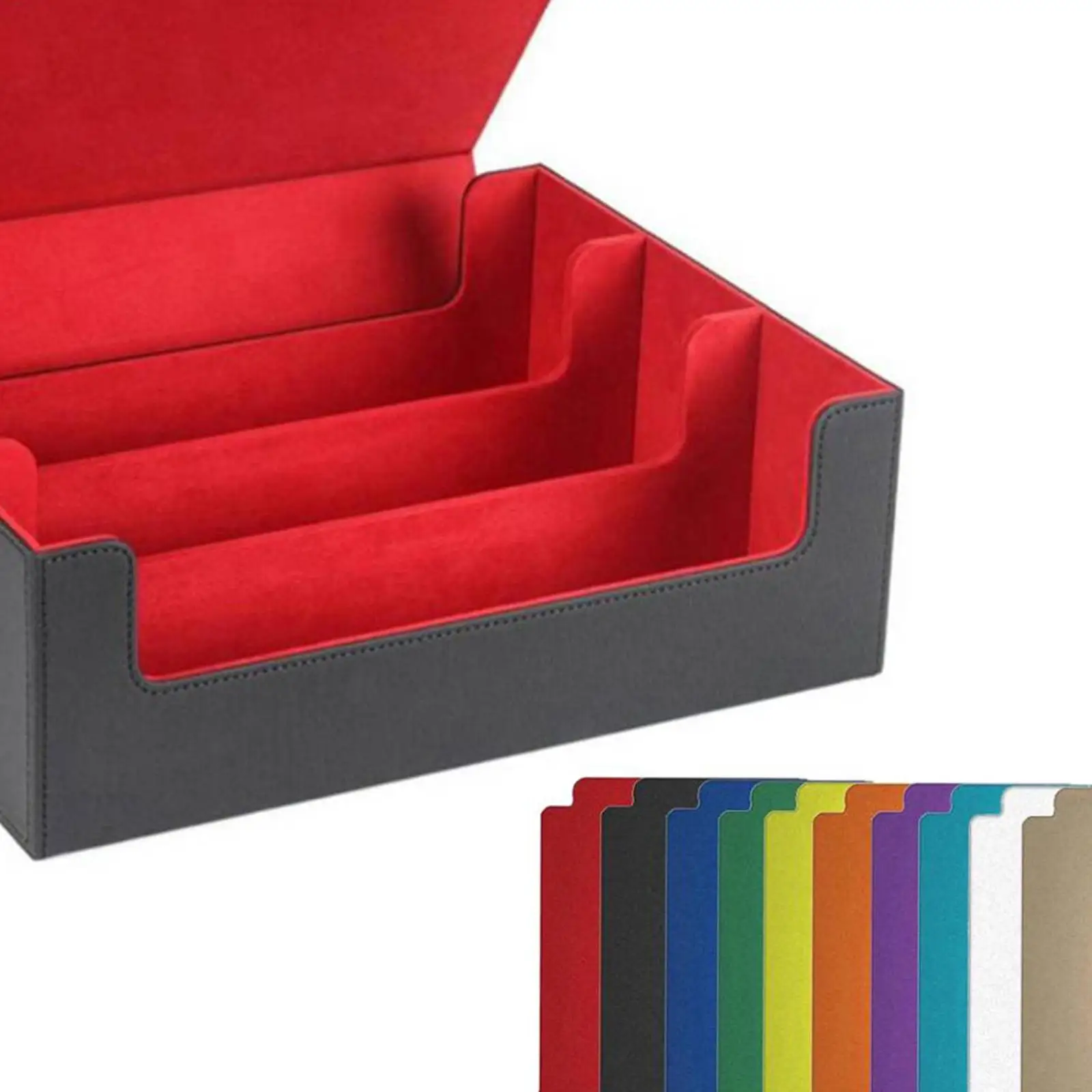【Material Premium】: Trading Card Deck Box está hecho de una superficie de material de cuero PU de calidad, forro de microfibra suave al tacto para proteger sus tarjetas de arañazos y golpes, manteniéndolas en orden y en condiciones seguras.