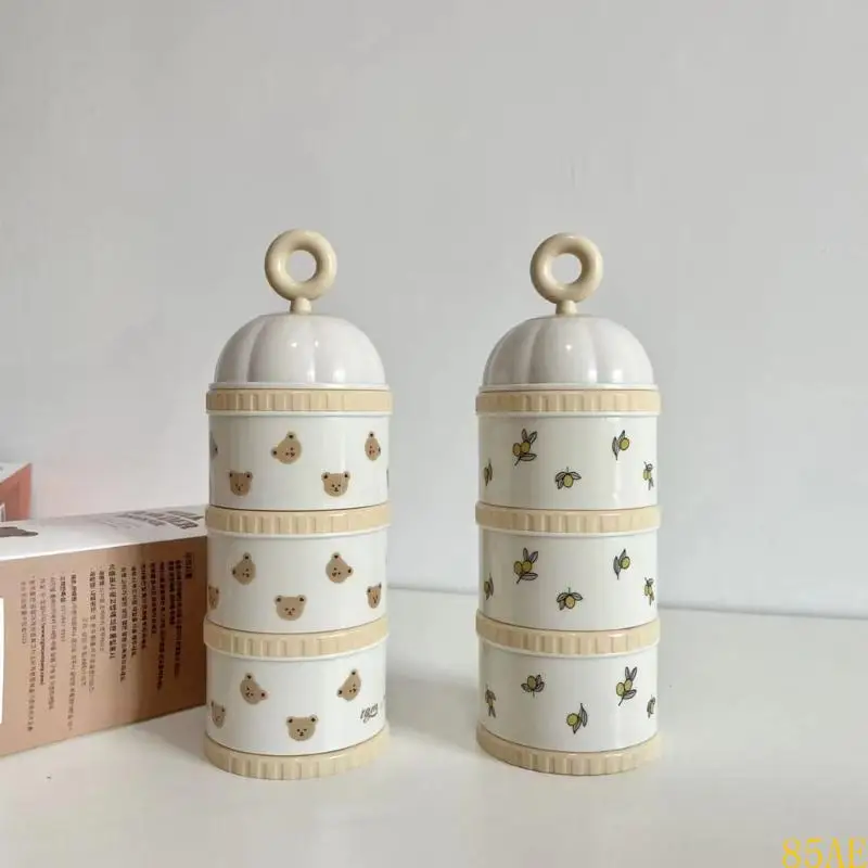 Gran capacidad: la caja contenedora de leche en polvo con 3 cajas divididas, cada división puede contener aprox.100 g/3,5 onzas garantizan frescas y secas para contener la leche en polvo, que es práctica y de fácil uso, sin preocuparse por la fuga de polvo, conveniente y estable.