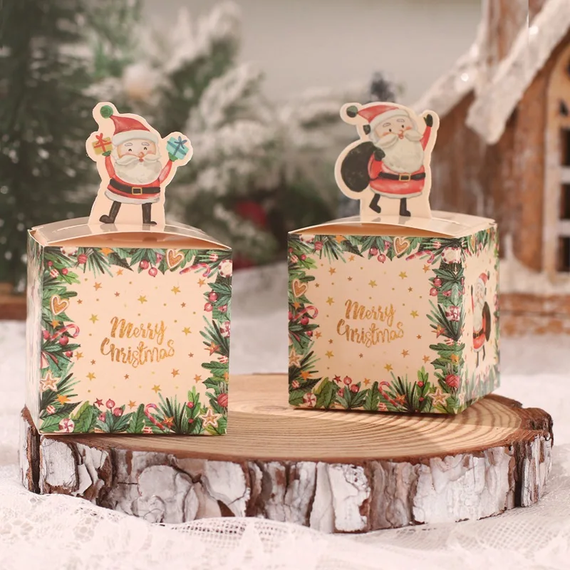 Caja de dulces de Papá Noel de Navidad, bolsas de regalo, paquetes de dulces de galletas de cristal, decoraciones de fiesta de Feliz Navidad para el hogar, 2023