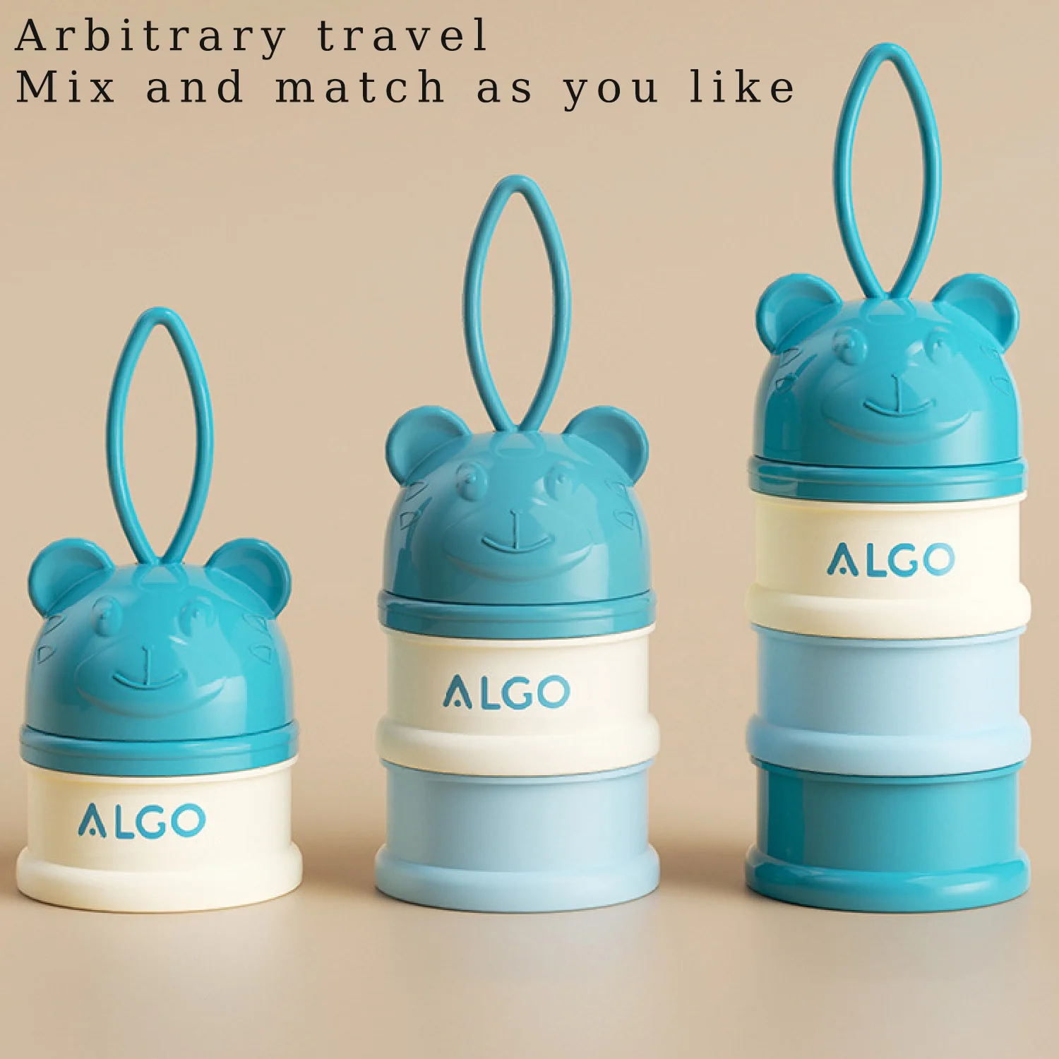 Diseño sellado a prueba de humedad: cada capa de rejilla está equipada con una cubierta de botón hermética, que evita eficazmente que la leche en polvo se humedezca y se apelmace, y bloquea la nutrición y el aroma.