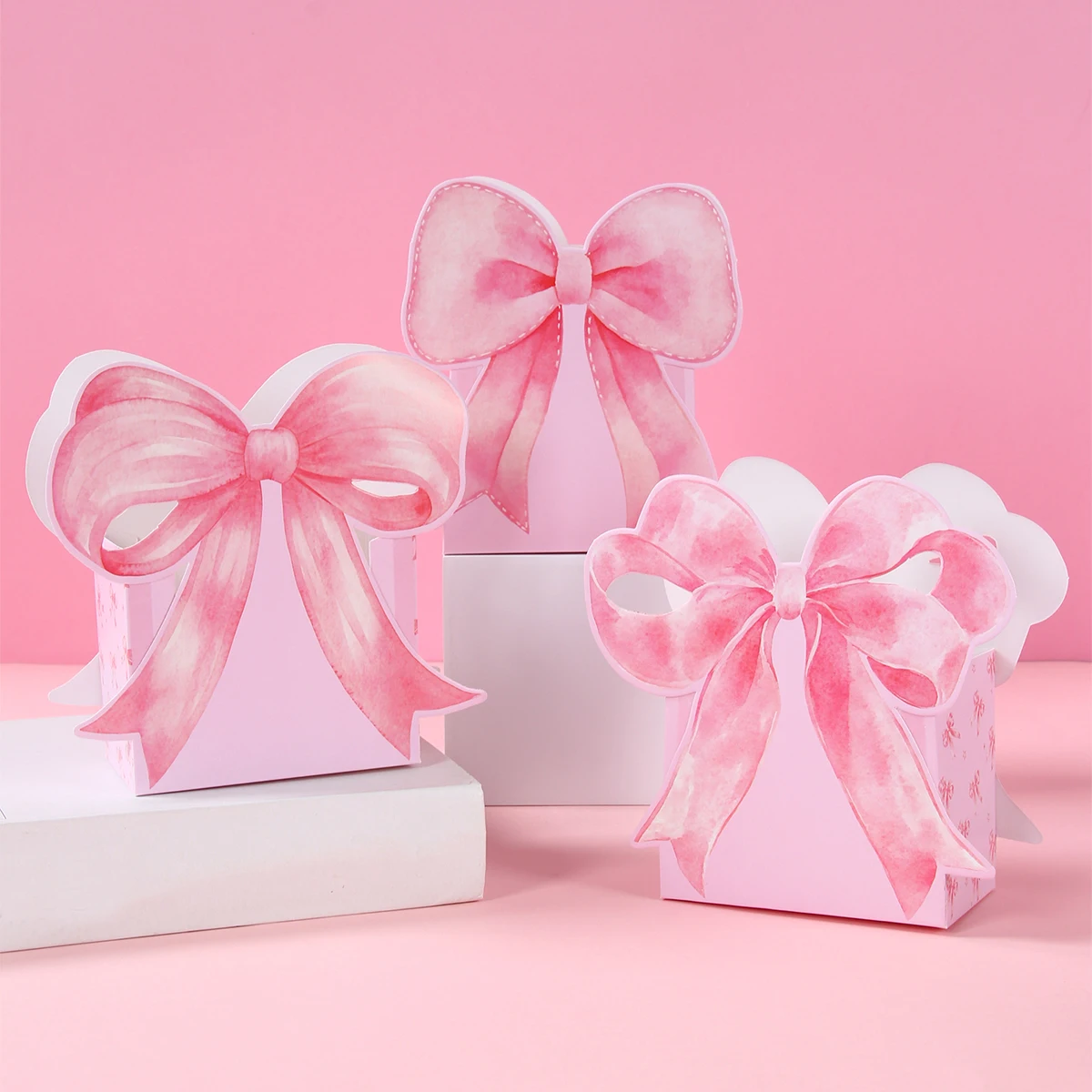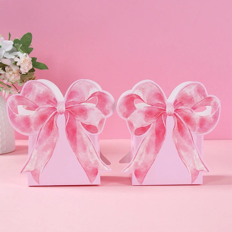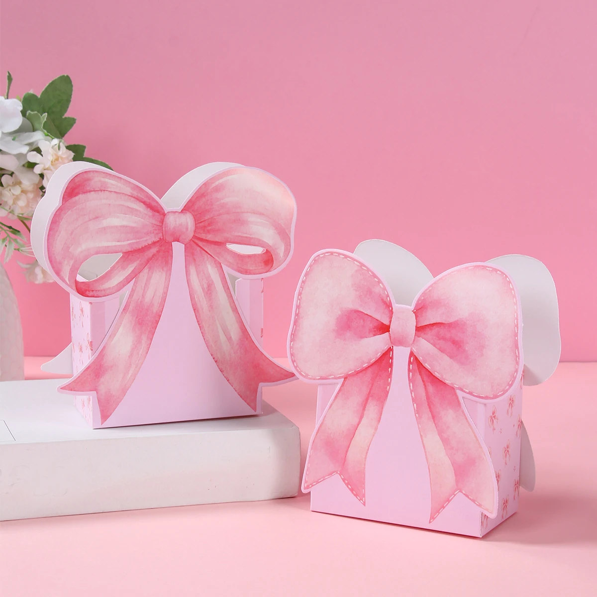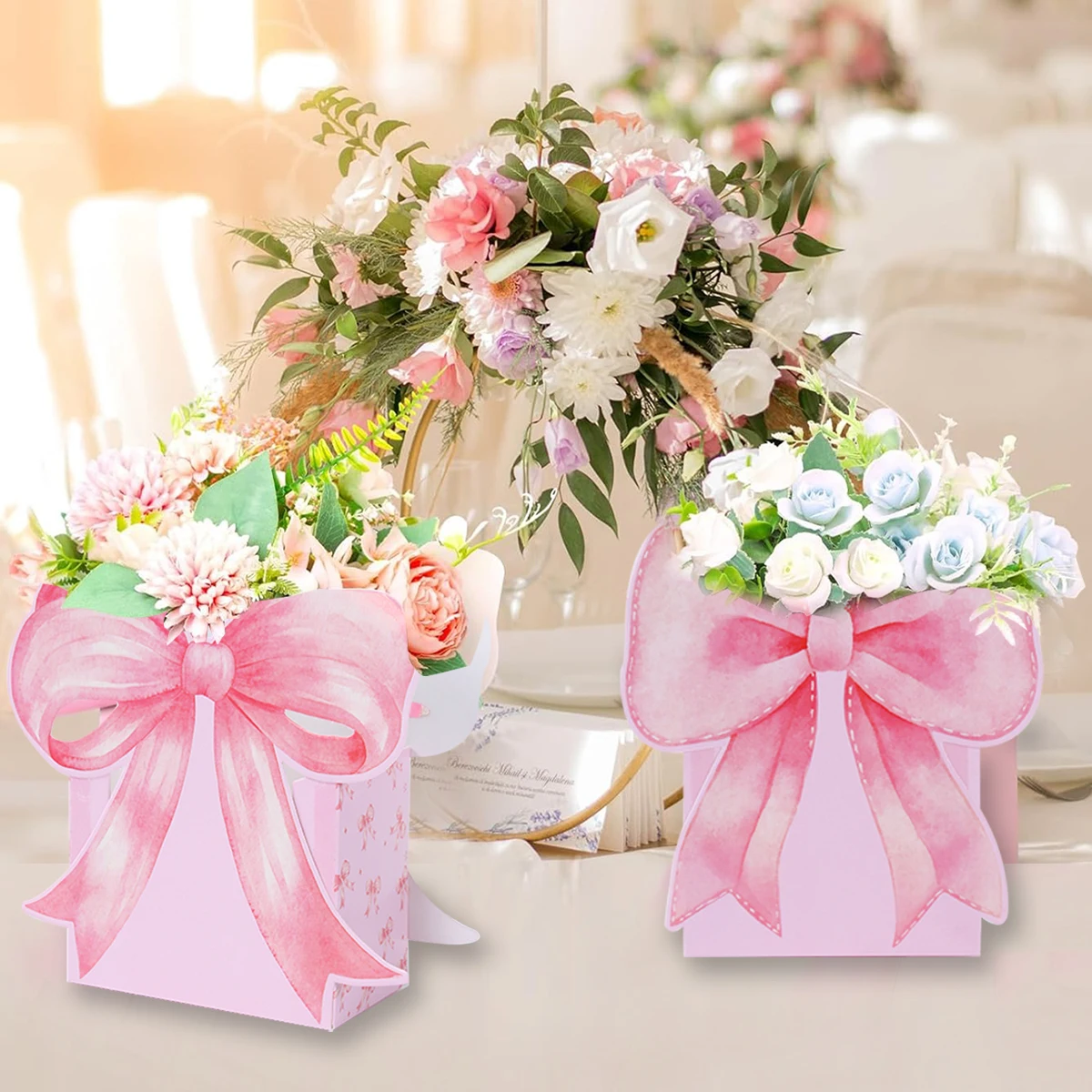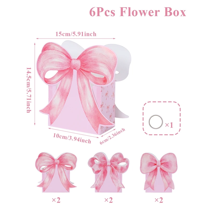 Caja de flores de papel con lazo rosa, 6 uds., coqueta, recuerdos de fiesta, caja de almacenamiento pequeña para cumpleaños, boda, recuerdo de fiesta, suministros de regalo