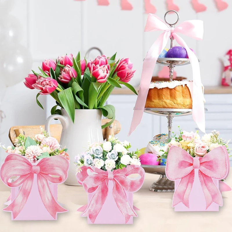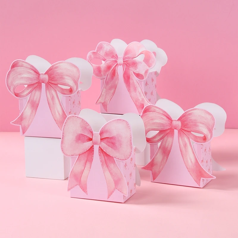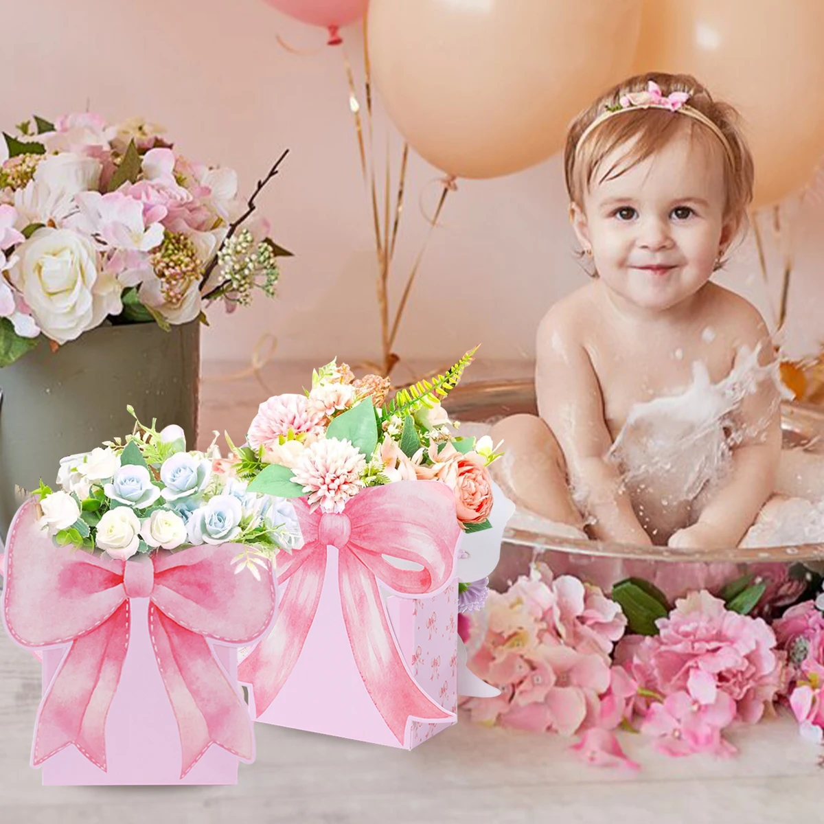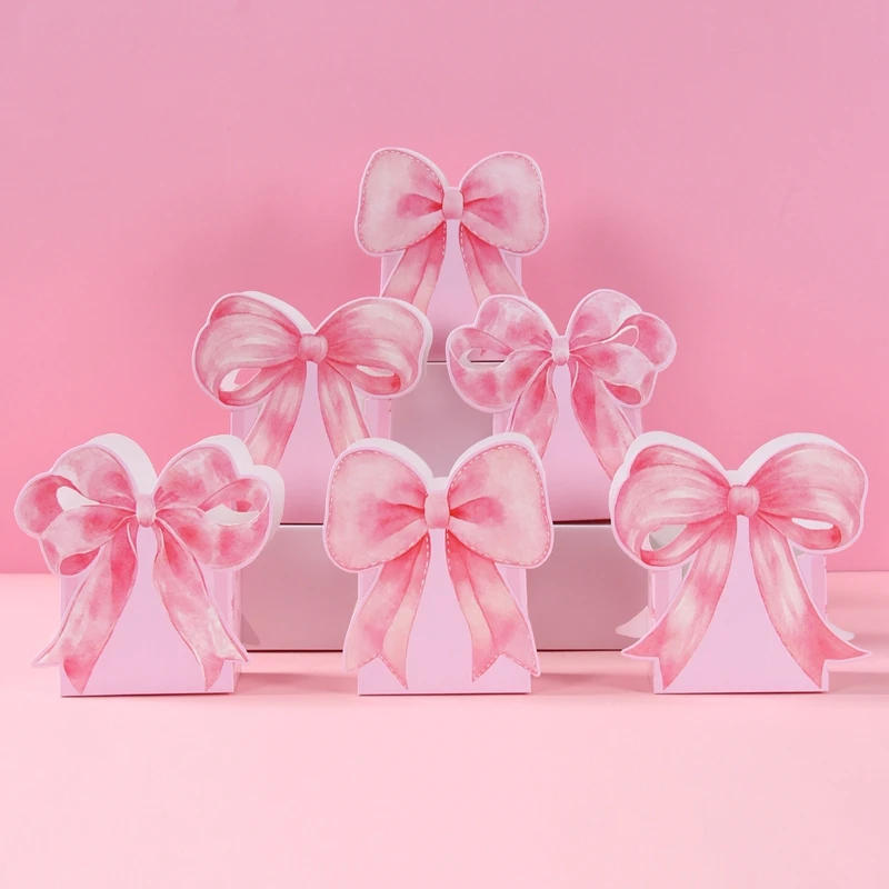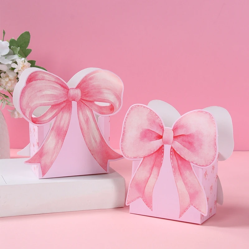 Caja de flores de papel con lazo rosa, 6 uds., coqueta, recuerdos de fiesta, caja de almacenamiento pequeña para cumpleaños, boda, recuerdo de fiesta, suministros de regalo