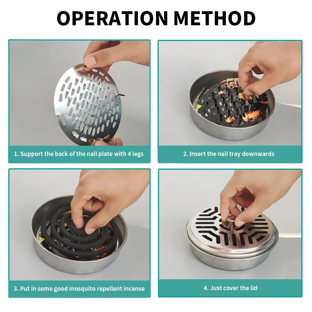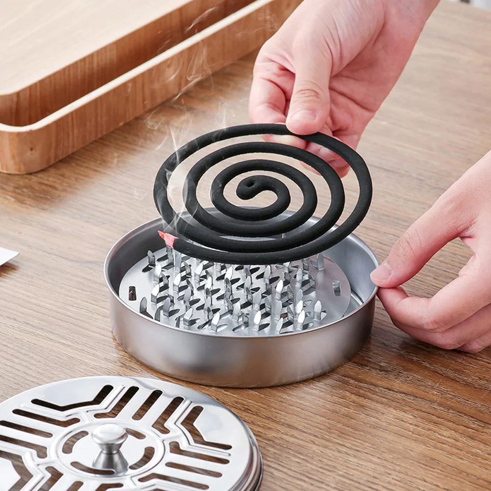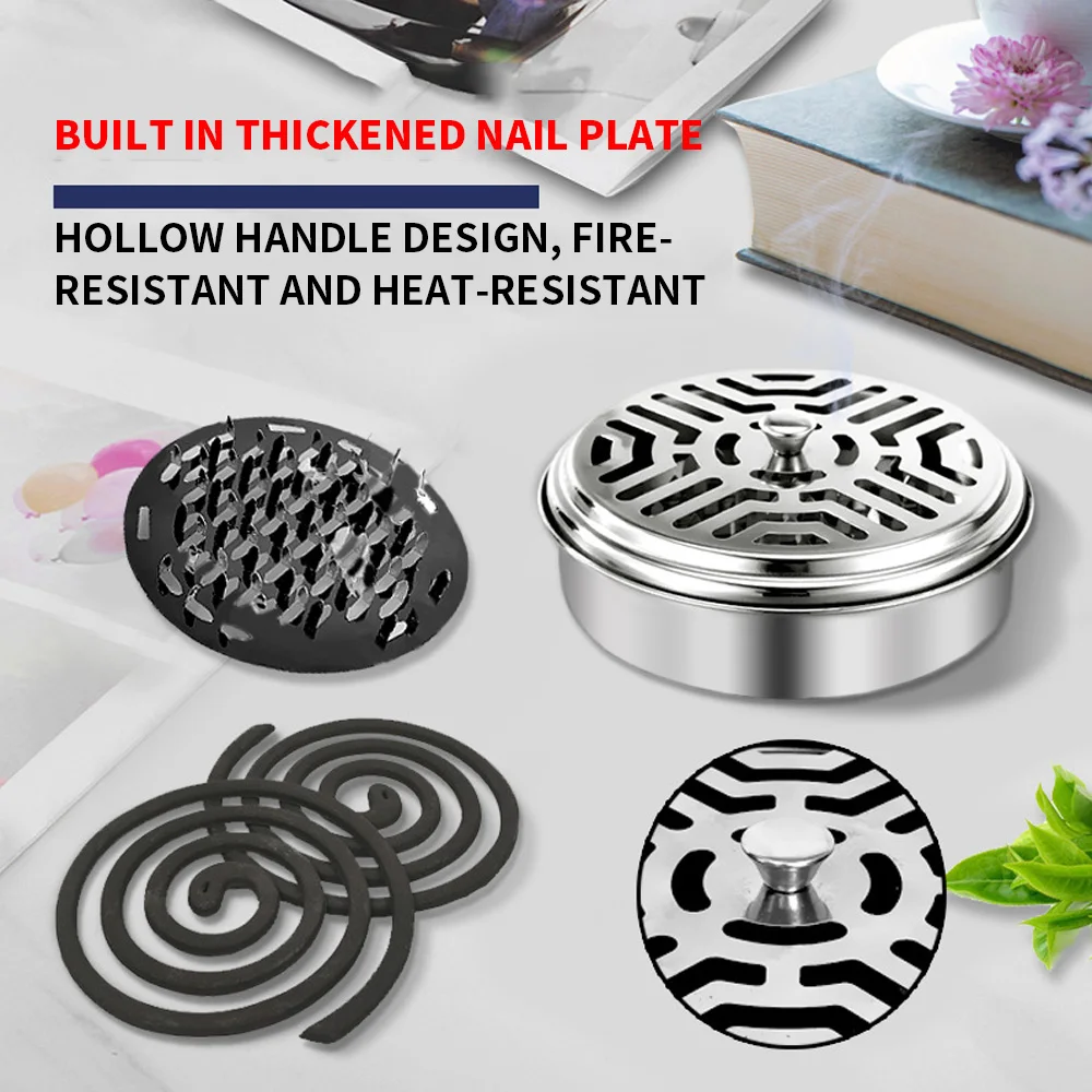 Caja de incienso para mosquitos ignífuga, estufa de incienso para mosquitos de acero inoxidable para el hogar, plato de ceniza cubierto, estante de incienso, 1/2/5 Uds.