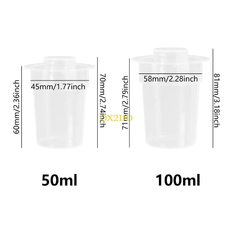 Diámetro: aprox.45 mm/1,77 pulgadas (50 ml), 58 mm/2,28 pulgadas (100 ml)