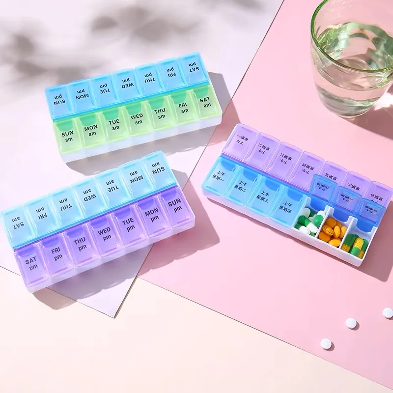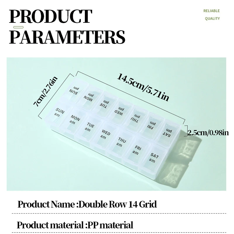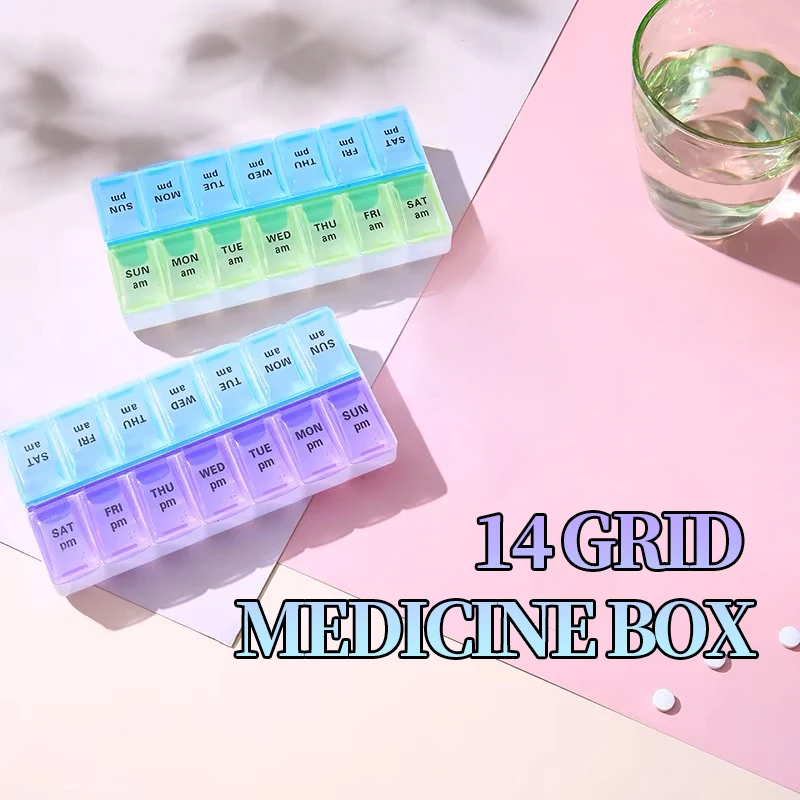 Comprar Caja de medicamentos de 14 cuadrículas, 7 días de medicación, se puede tomar a tiempo por la mañana y por la tarde, con preparación precisa