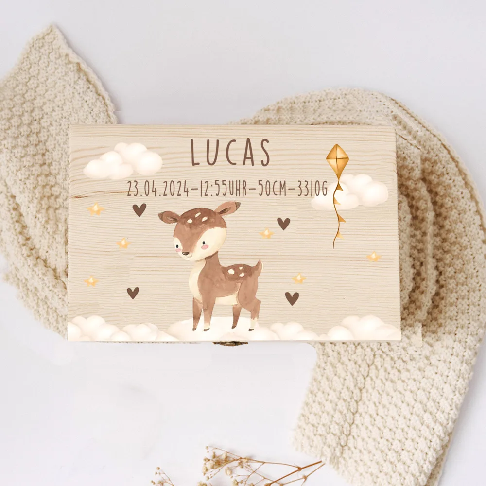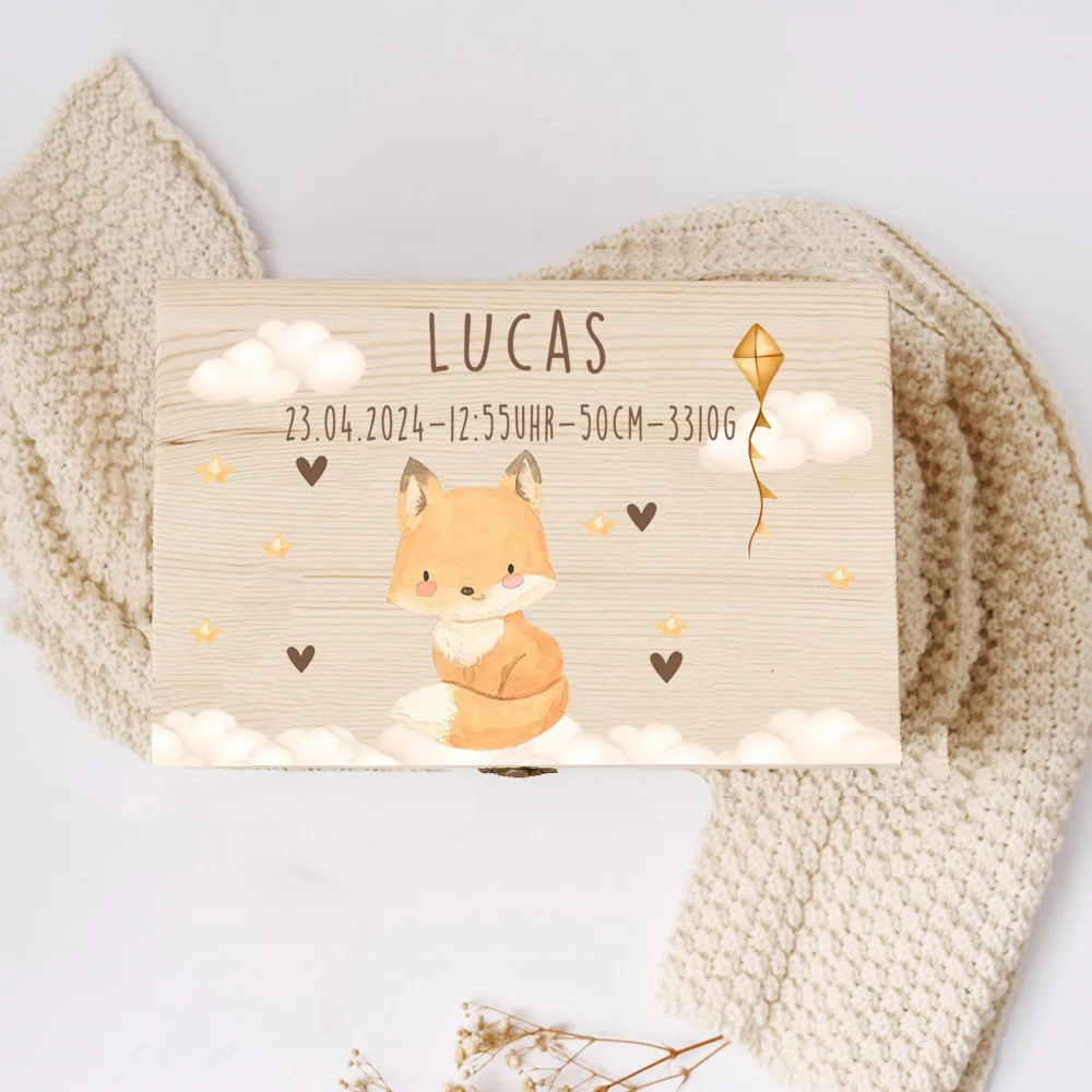 Caja de memoria para bebé, cajas de memoria con nombre personalizado, estampado de animales de arcoíris, caja de recuerdos de madera para niños, regalo de ducha de cumpleaños personalizado para niños
