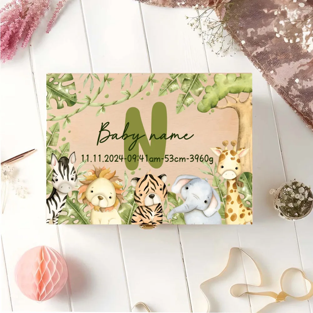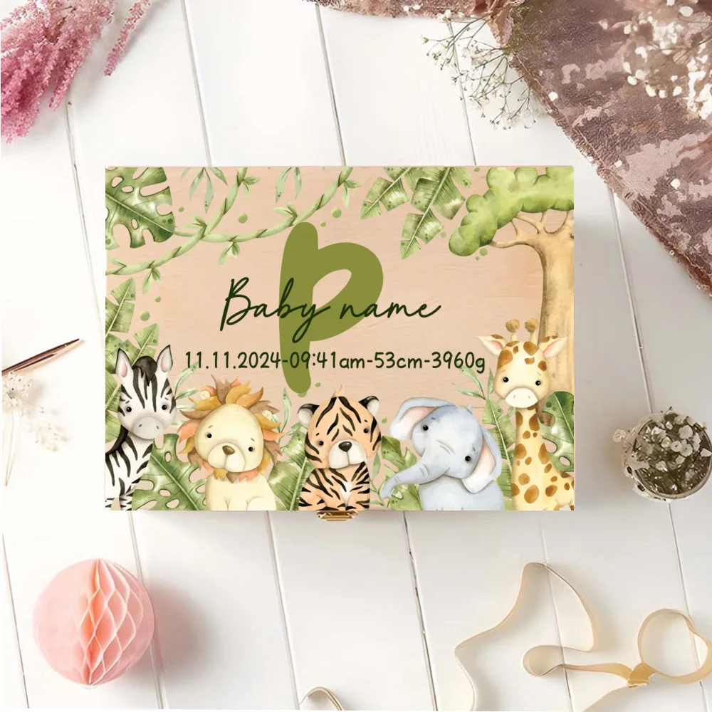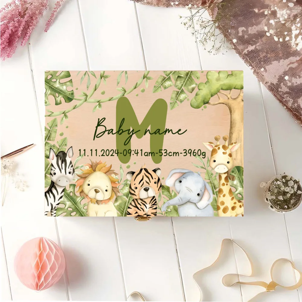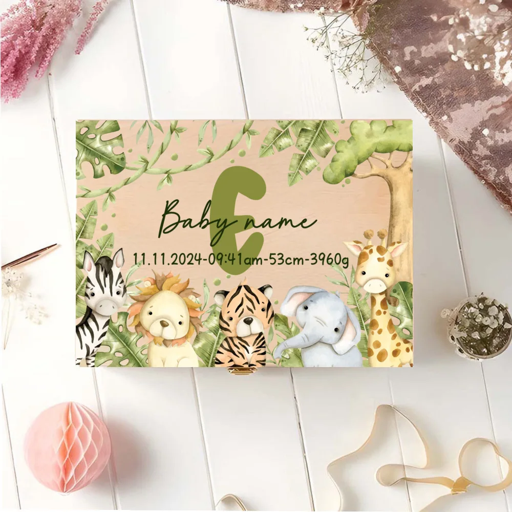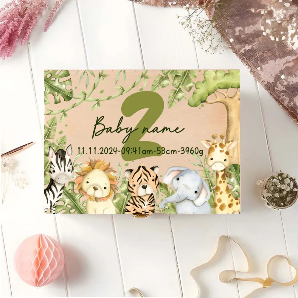 Caja de memoria personalizada con cajas de recuerdos de aventureros de animales para almacenar decoración de regalos para bautismo, nacimiento, regalos para Baby Shower