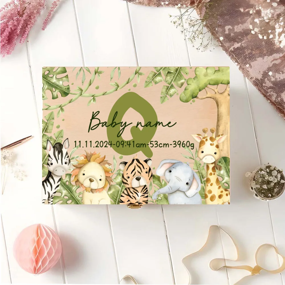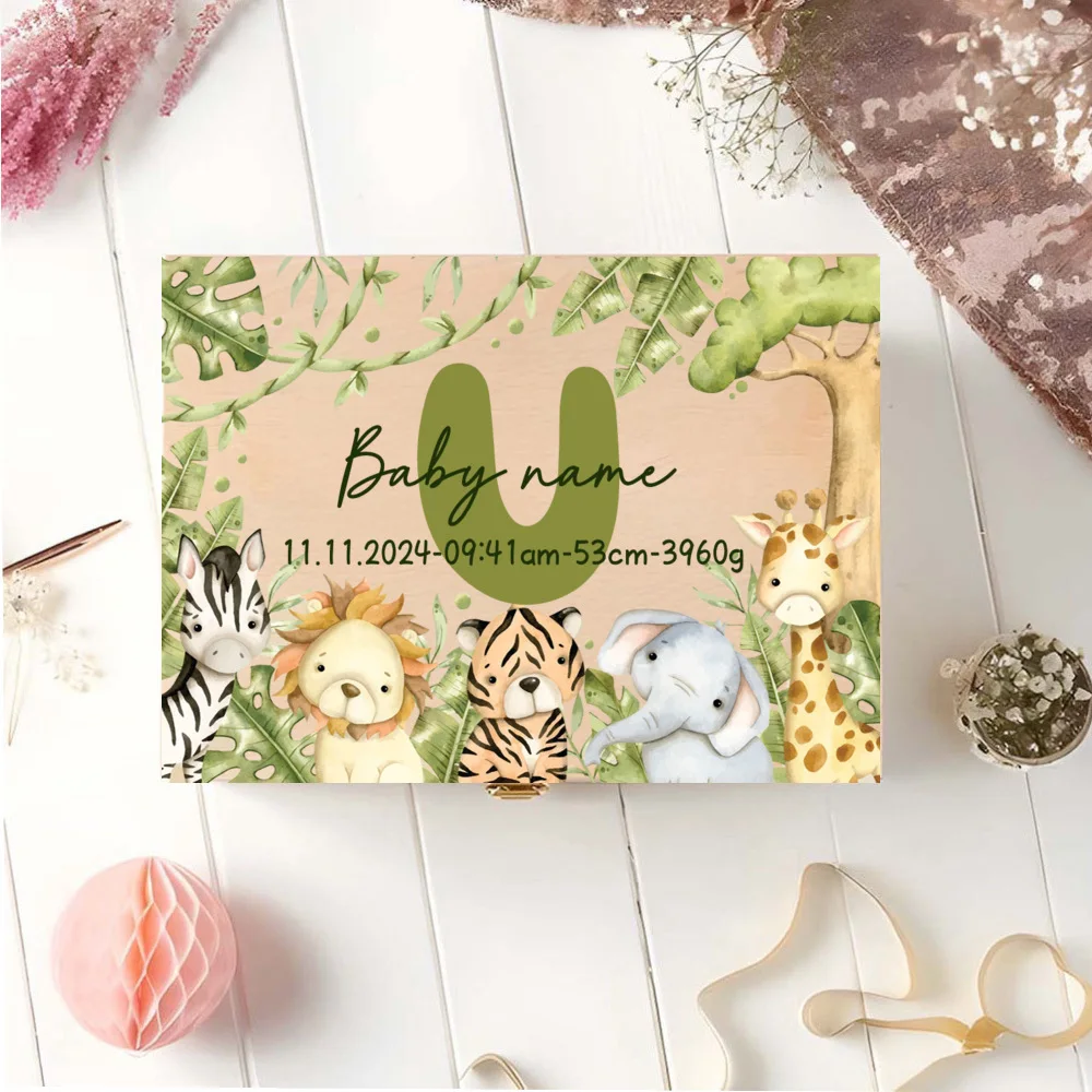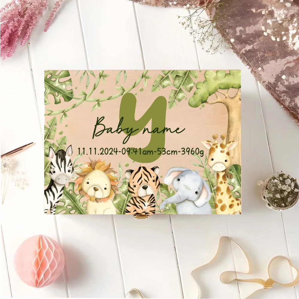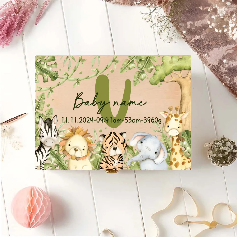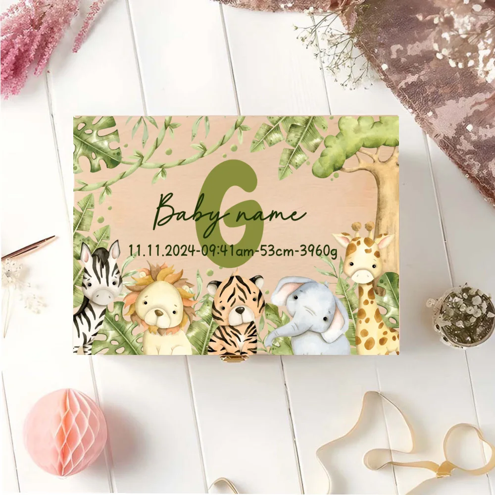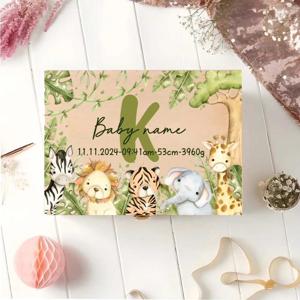 Caja de memoria personalizada con cajas de recuerdos de aventureros de animales para almacenar decoración de regalos para bautismo, nacimiento, regalos para Baby Shower