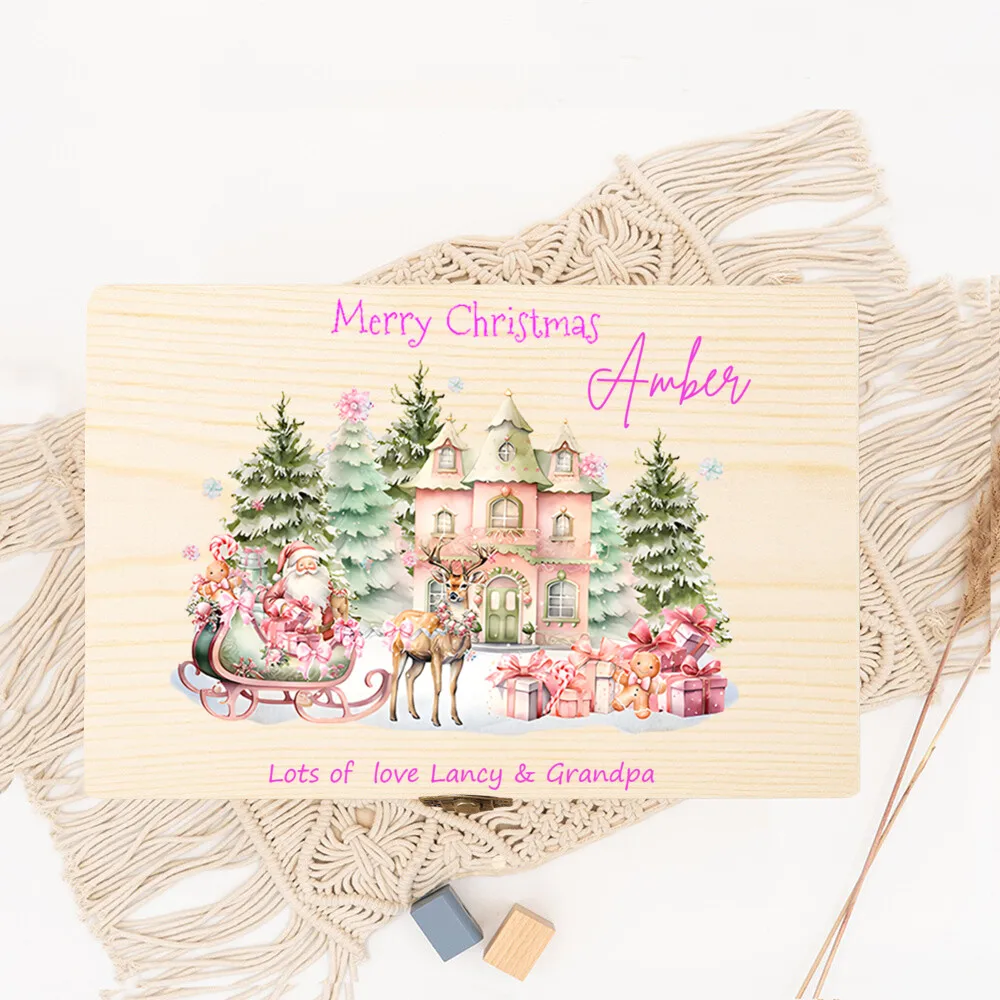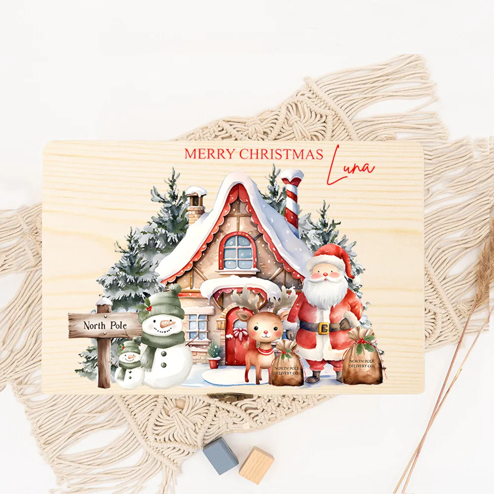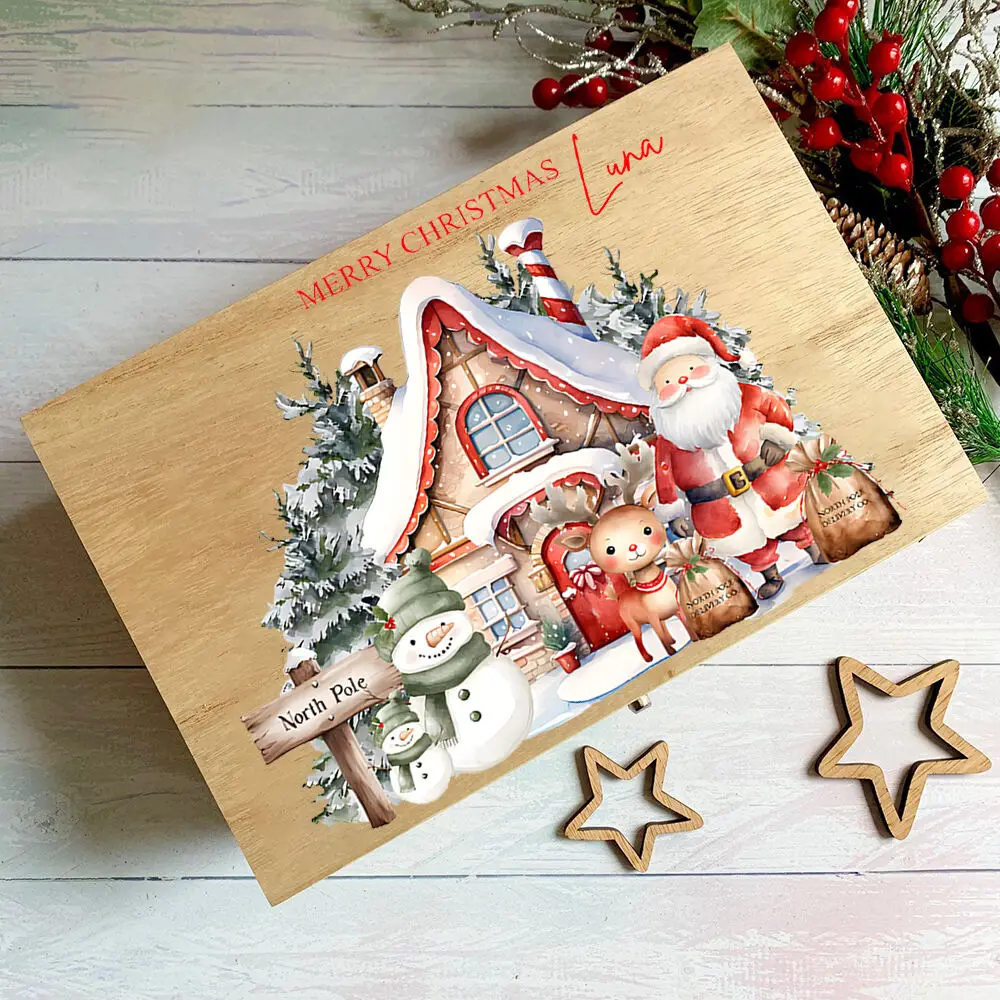 Caja de Nochebuena de Papá Noel personalizada, caja de Nochebuena, cajas de golosinas navideñas, cajas de recuerdos de Navidad de madera personalizables