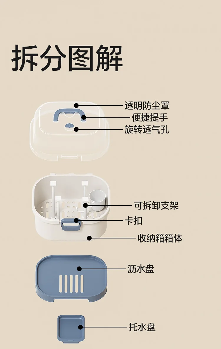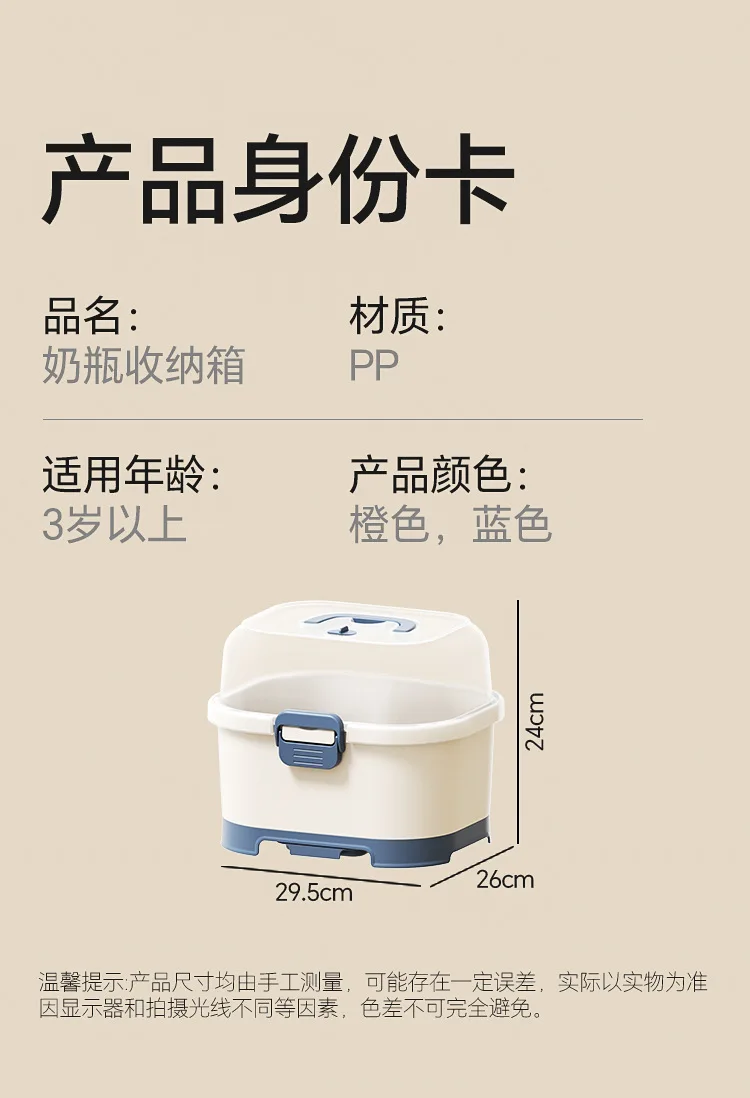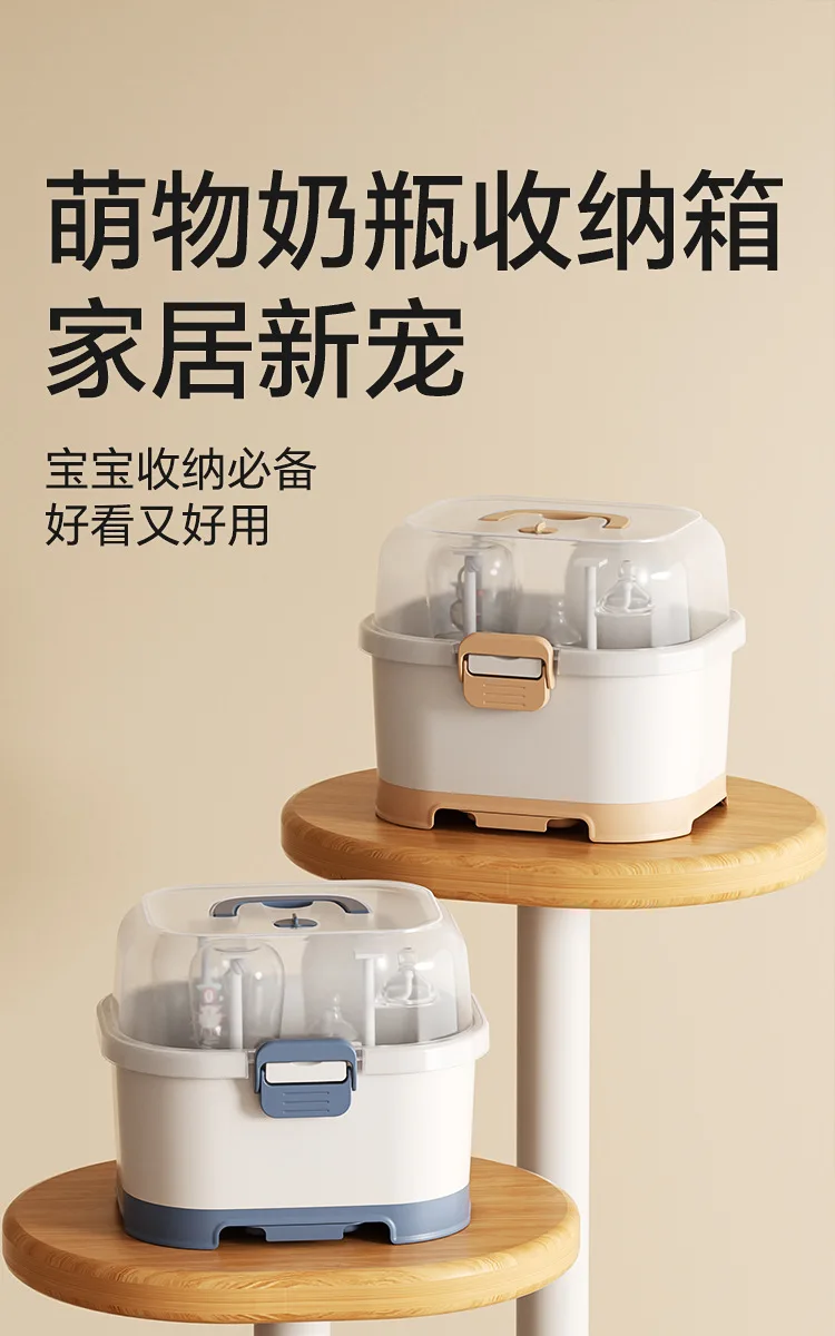 Caja organizadora de biberones, contenedor de almacenamiento de leche de gran capacidad, Material PP transparente a prueba de polvo, mango portátil para guardería