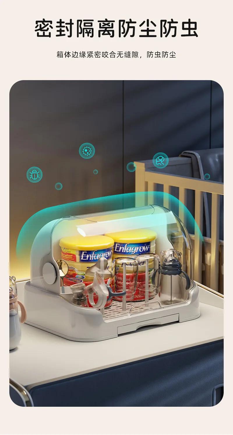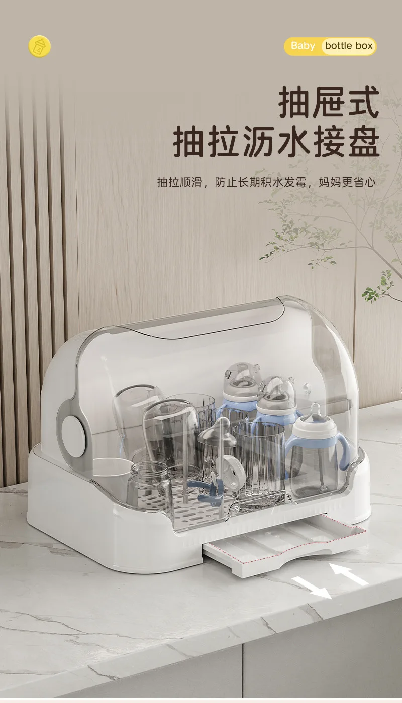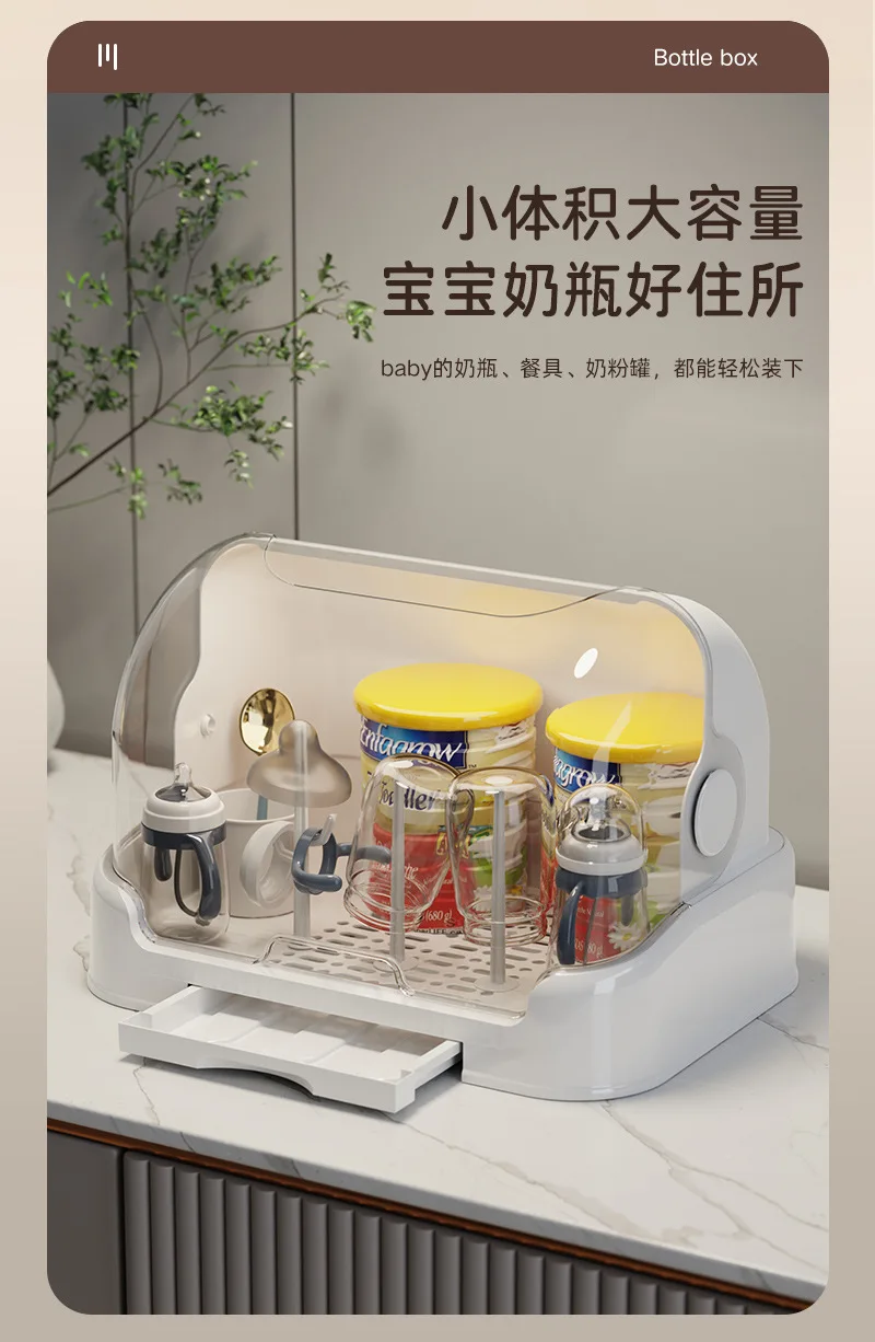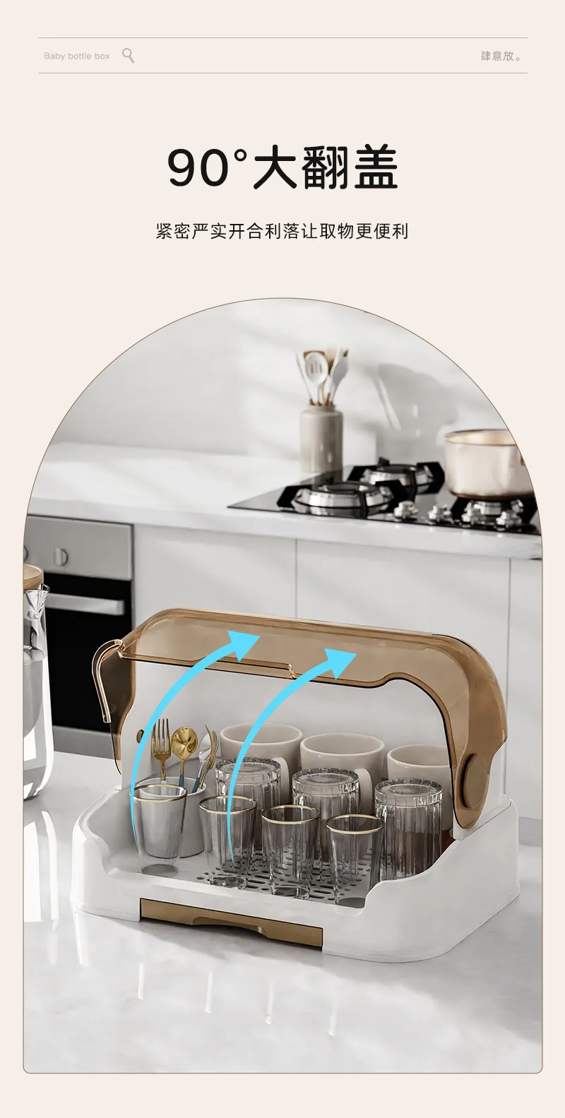 Caja organizadora de biberones con tapa, escurridor a prueba de polvo para vajilla de bebé, Material PP transparente, secado rápido, diseño grueso