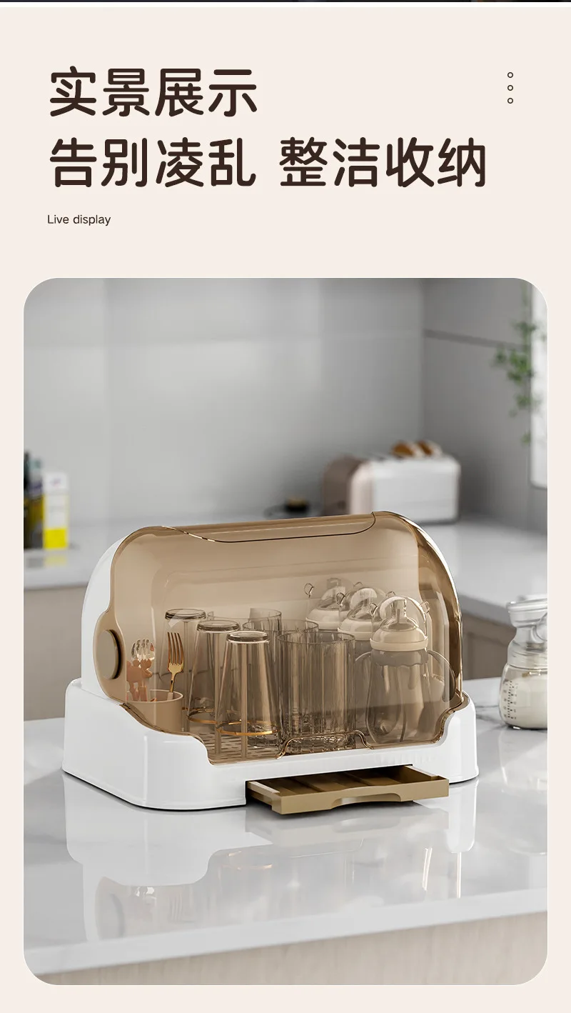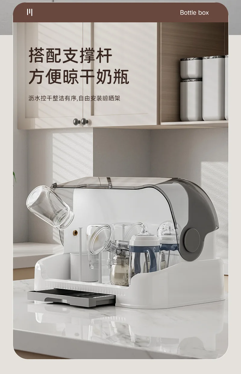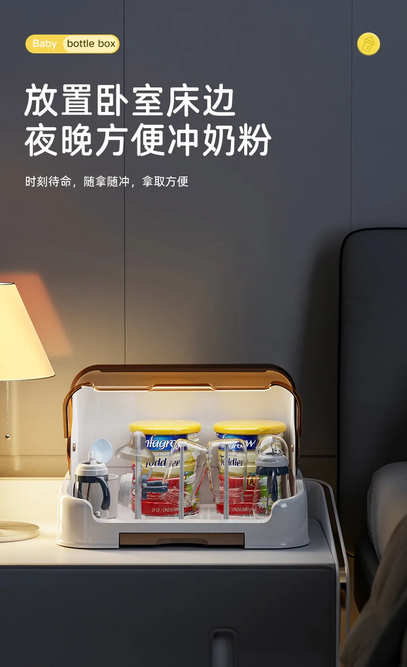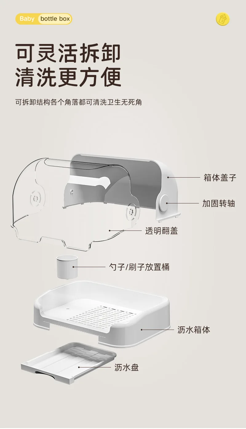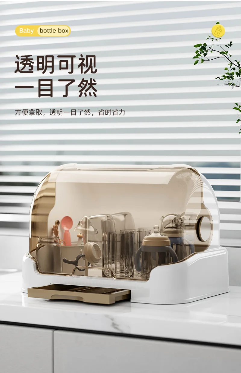 Caja organizadora de biberones con tapa, escurridor a prueba de polvo para vajilla de bebé, Material PP transparente, secado rápido, diseño grueso