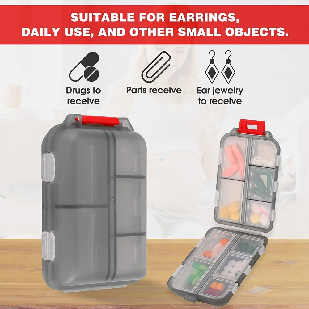 Comprar Caja organizadora de píldoras pequeñas, estuche de bolsillo portátil, almacenamiento de píldoras kawaii, 10 rejillas, viaje semanal