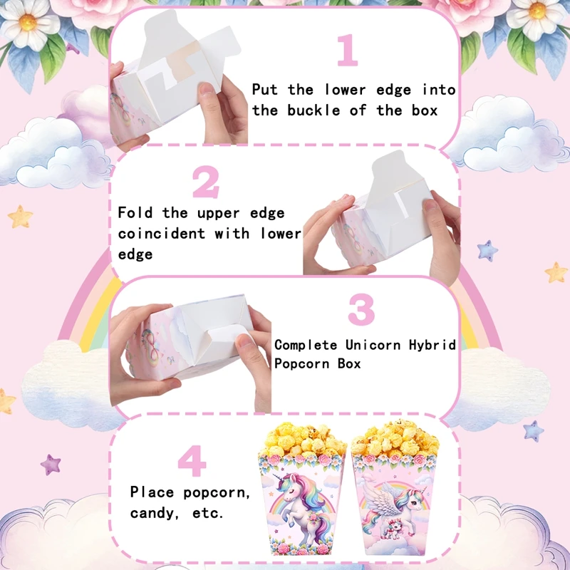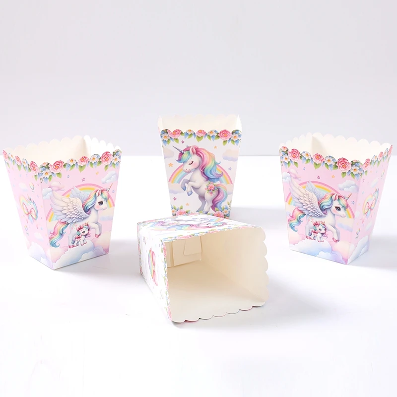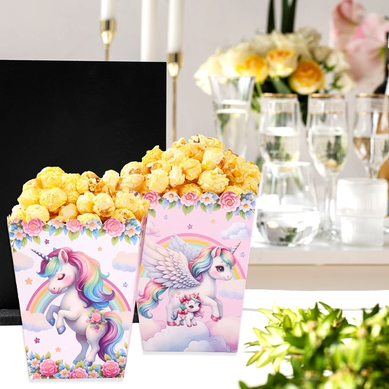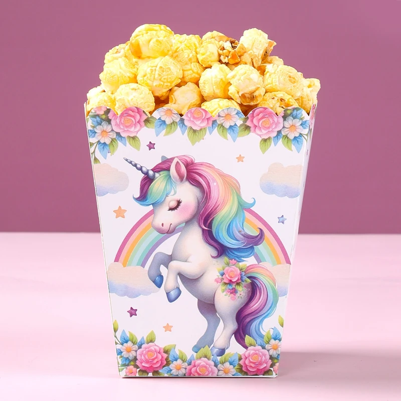 Caja de palomitas de maíz de unicornio, decoración para fiesta de 1er cumpleaños, BabyShower, unicornio arcoíris, suministros para fiesta de boda, 10 Uds.